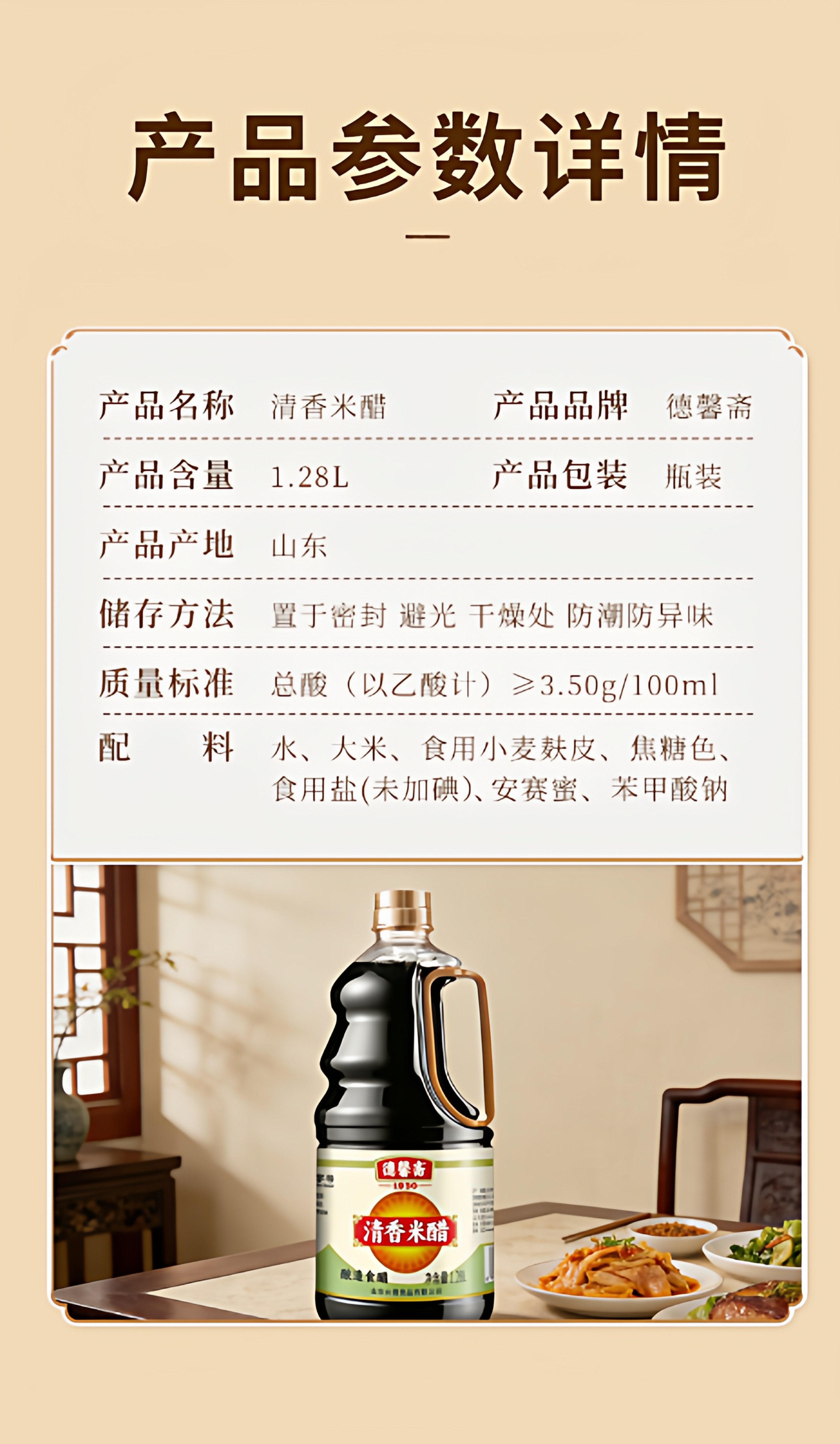 德馨斋 清香米醋 大米酿造 饺子食醋 香醋凉拌 炒菜蘸点 家用美味