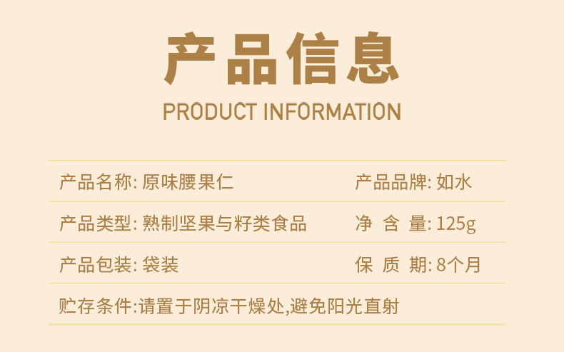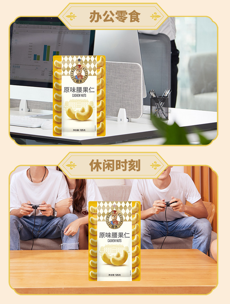 如水原味腰果仁、125g×2、越南风味、坚果、孕妇儿童、配料干净、休闲零食