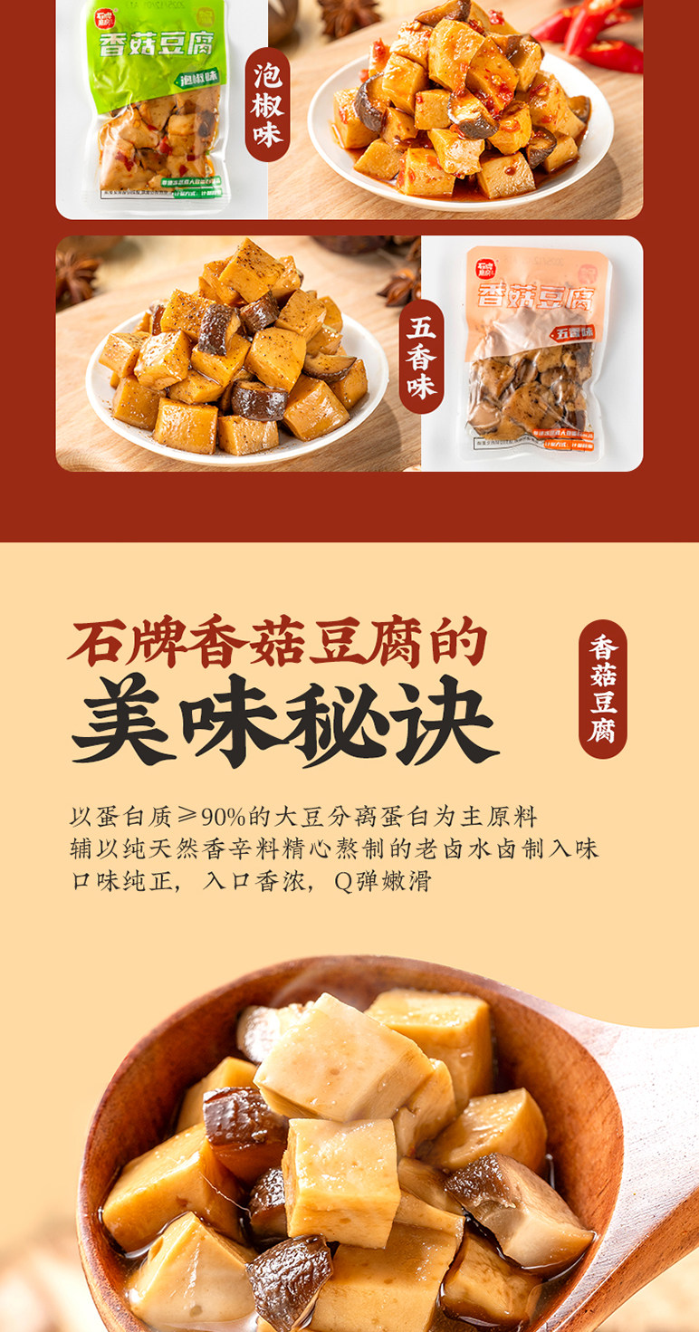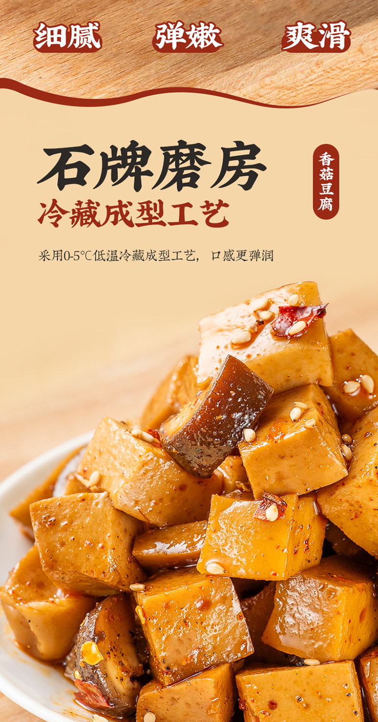 石牌磨房、香菇豆腐小零食、嫩豆腐干、五香辣条、卤味素肉、小包装、解馋