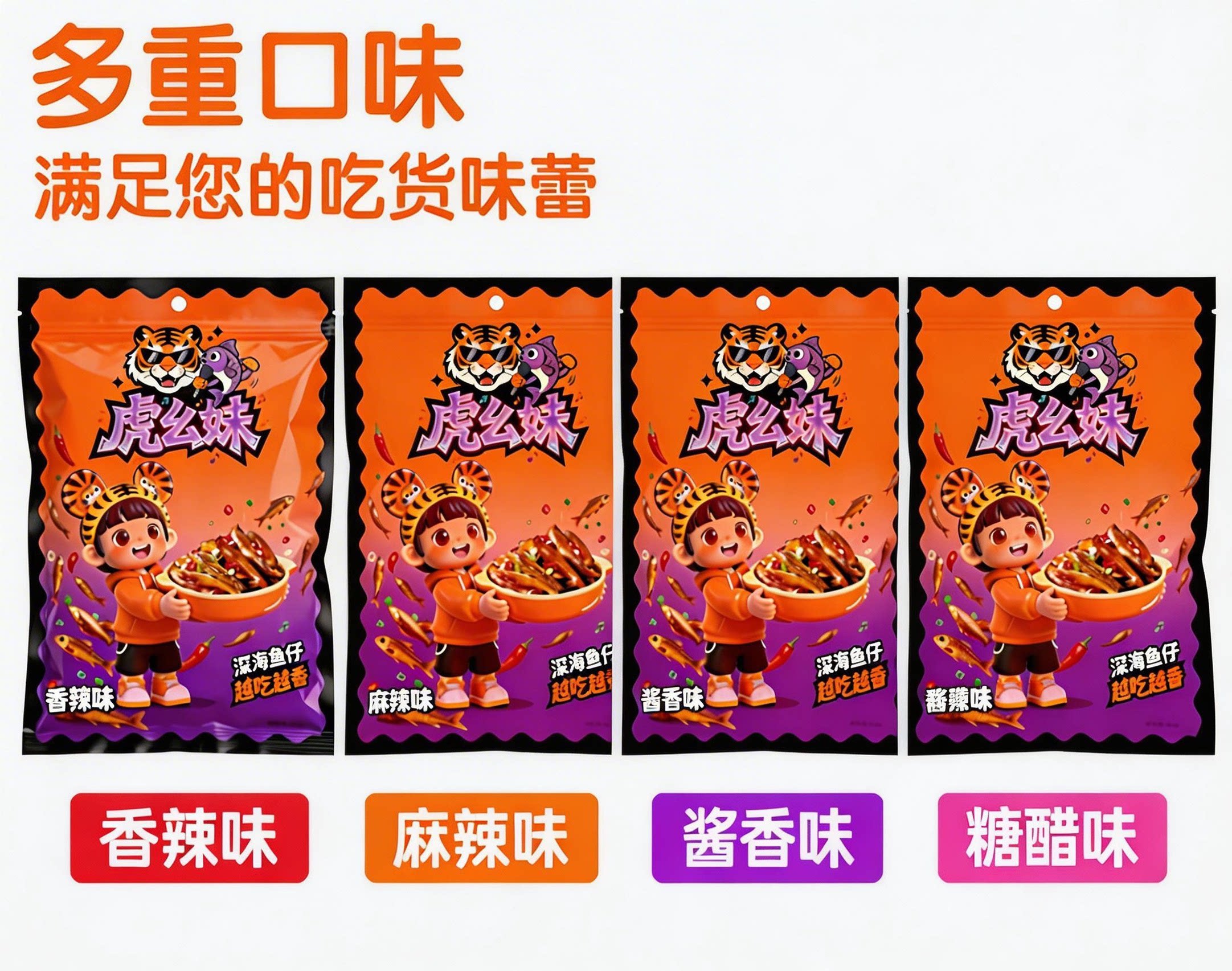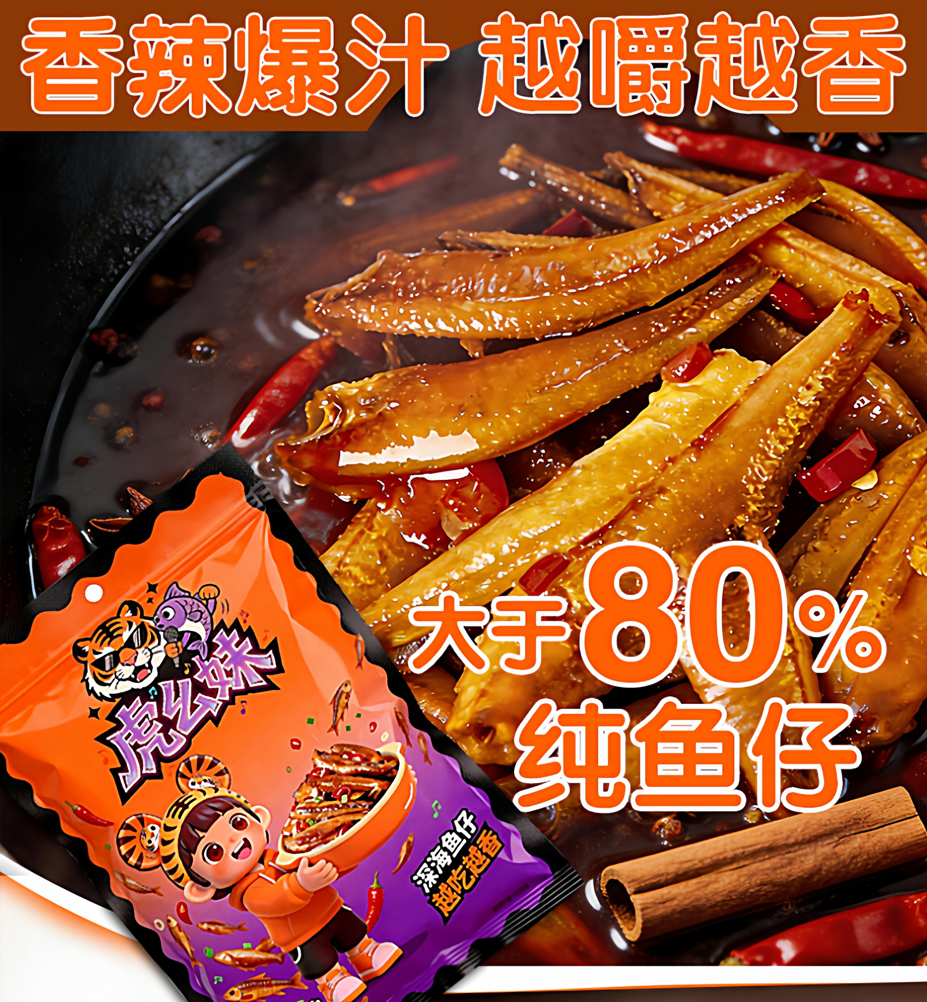 虎幺妹、香辣小鱼仔、湖南特产、零食小吃、即食、追剧解馋
