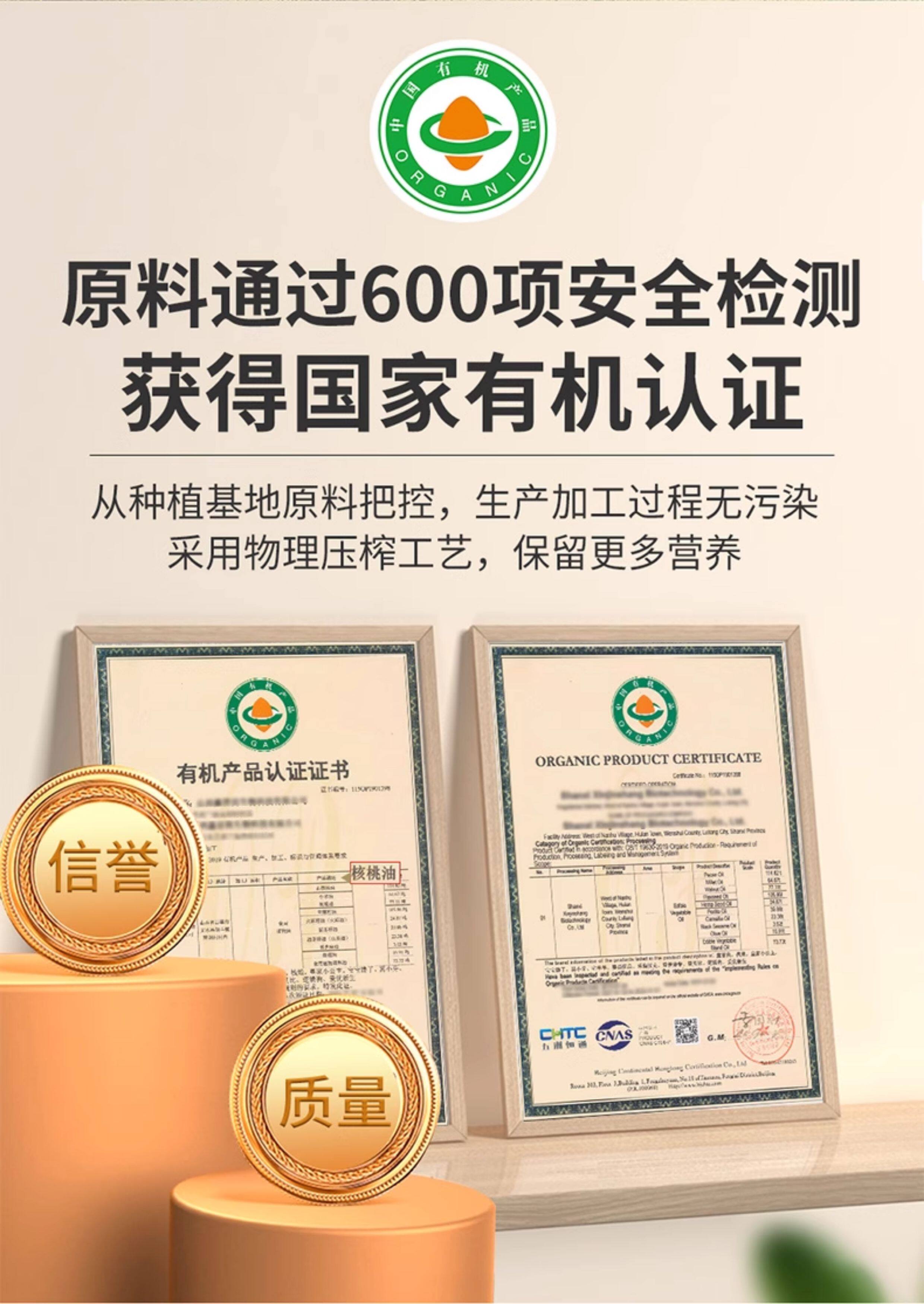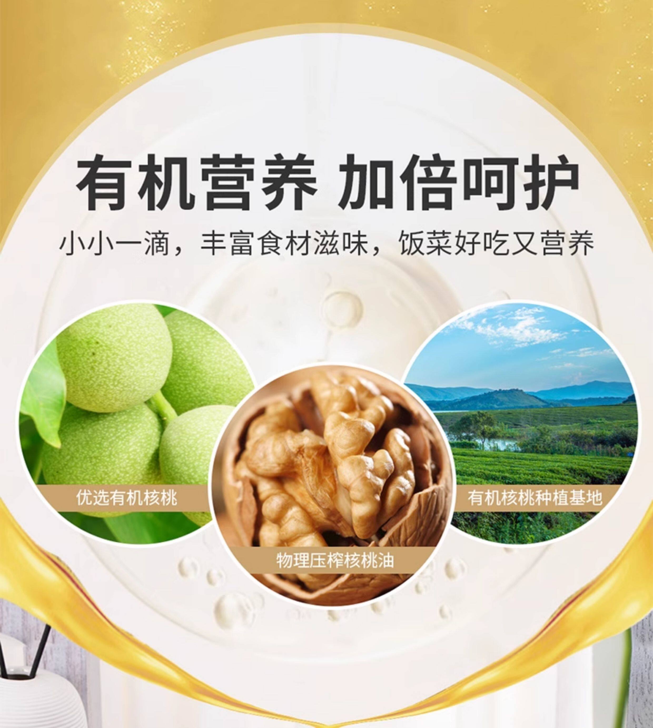 首粮有机核桃油婴幼儿宝宝辅食搭配凉拌热炒营养物理压榨食用油