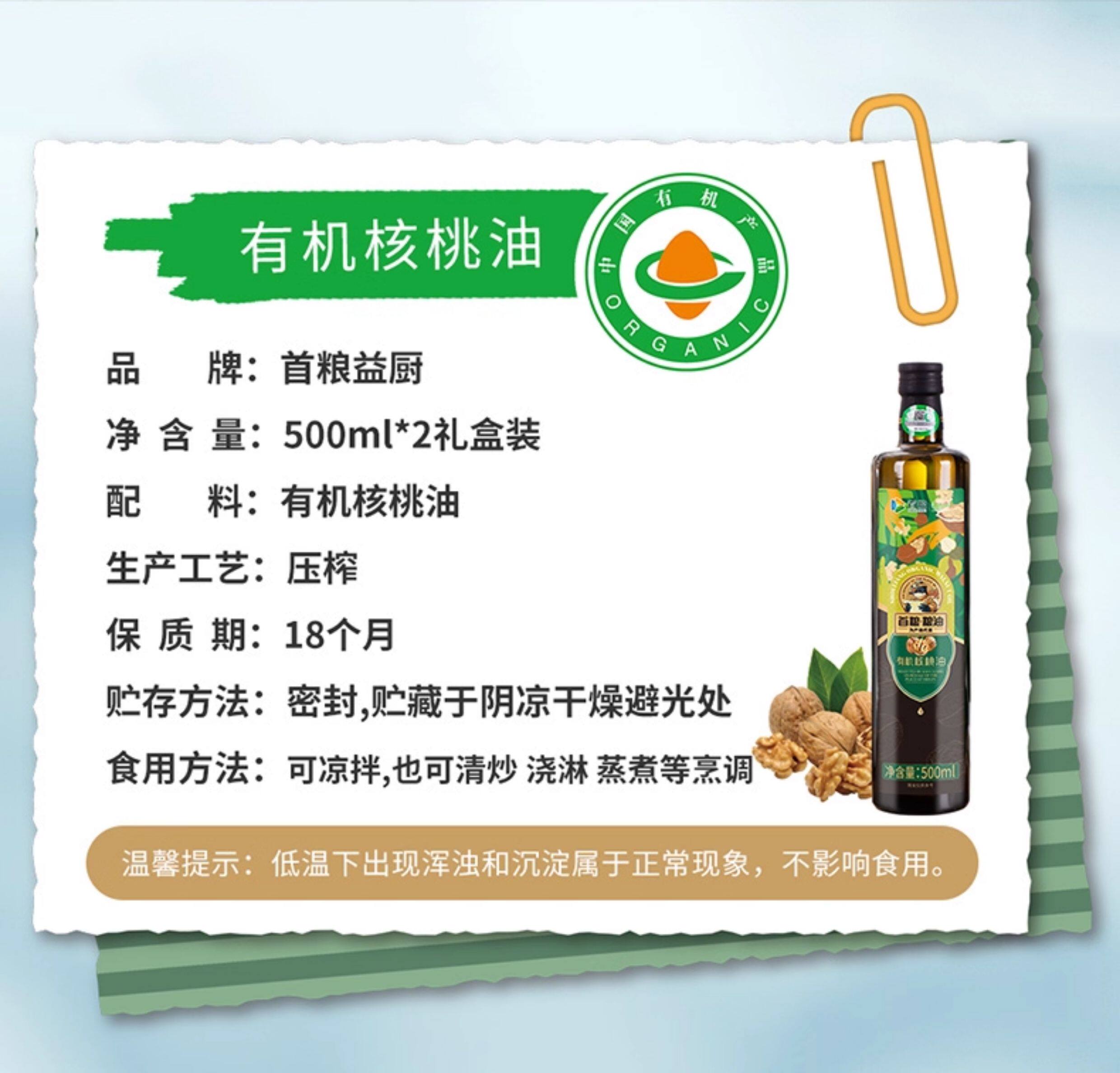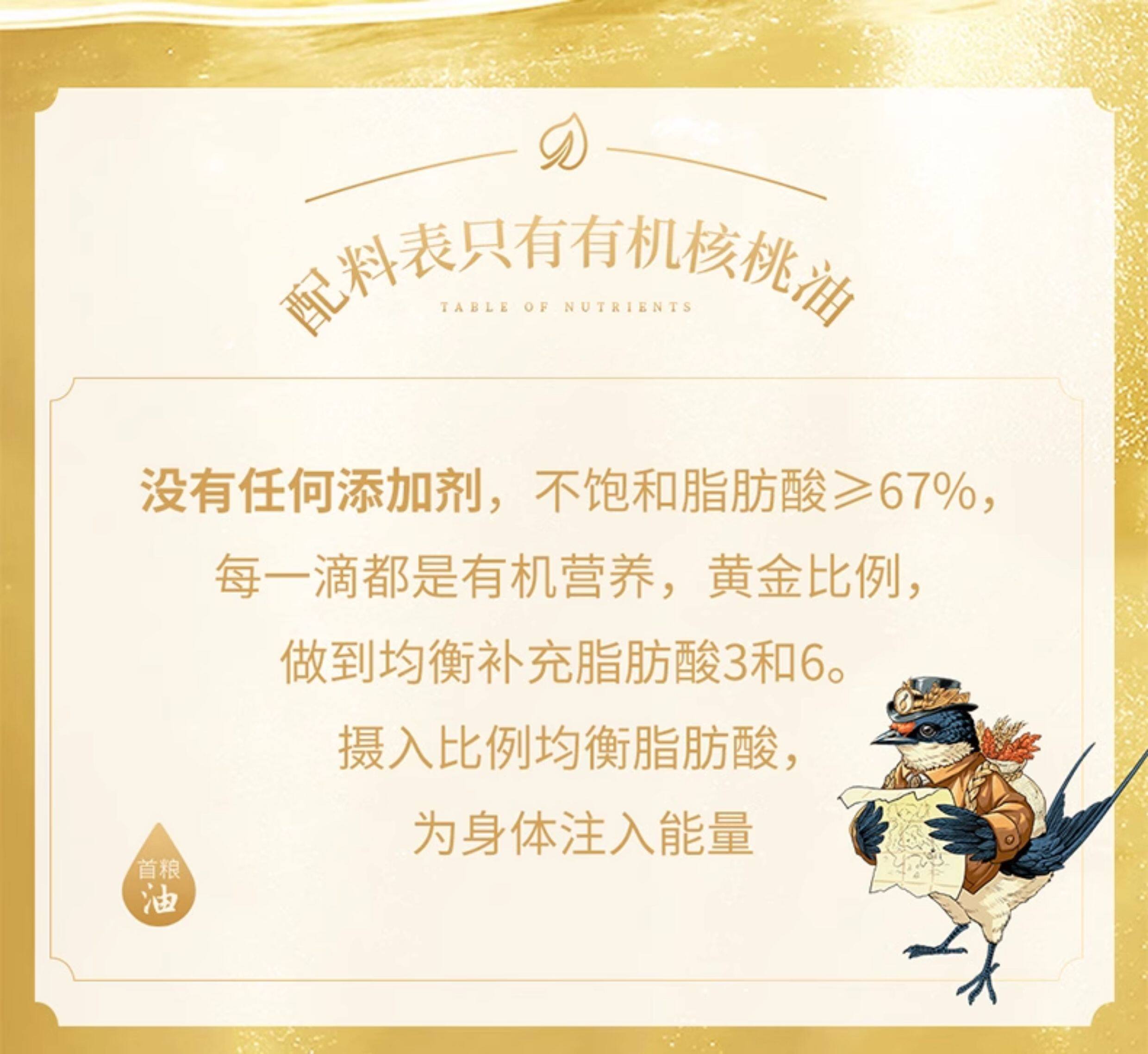 首粮 有机核桃油 婴幼儿辅食 凉拌热炒 营养 物理压榨 食用油