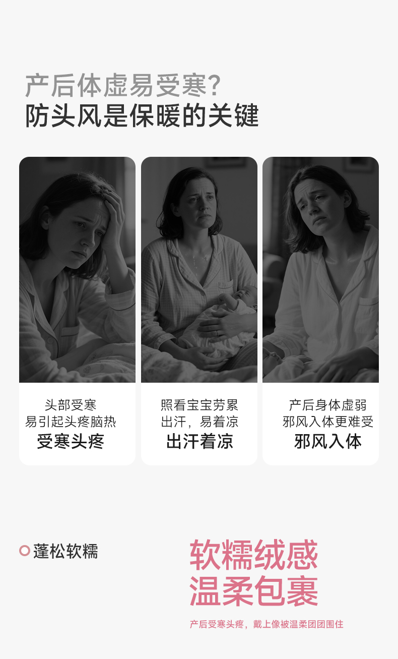 【新品】TugTug半边绒月子帽防风产妇帽秋冬孕妇产后头巾月子用品