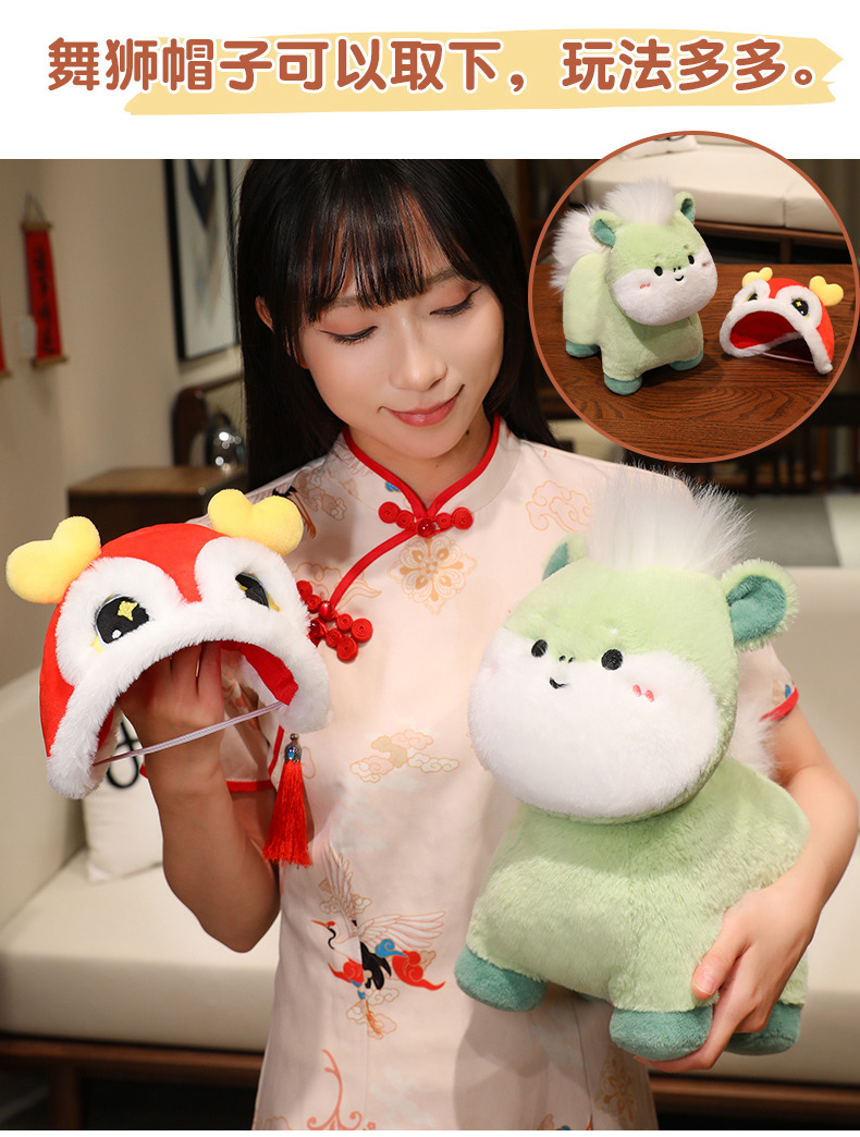 2026马年、吉祥物公仔、卡通舞狮马、玩偶、生肖娃娃、毛绒玩具、年会礼品