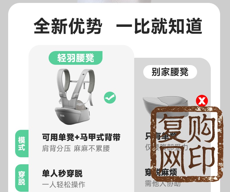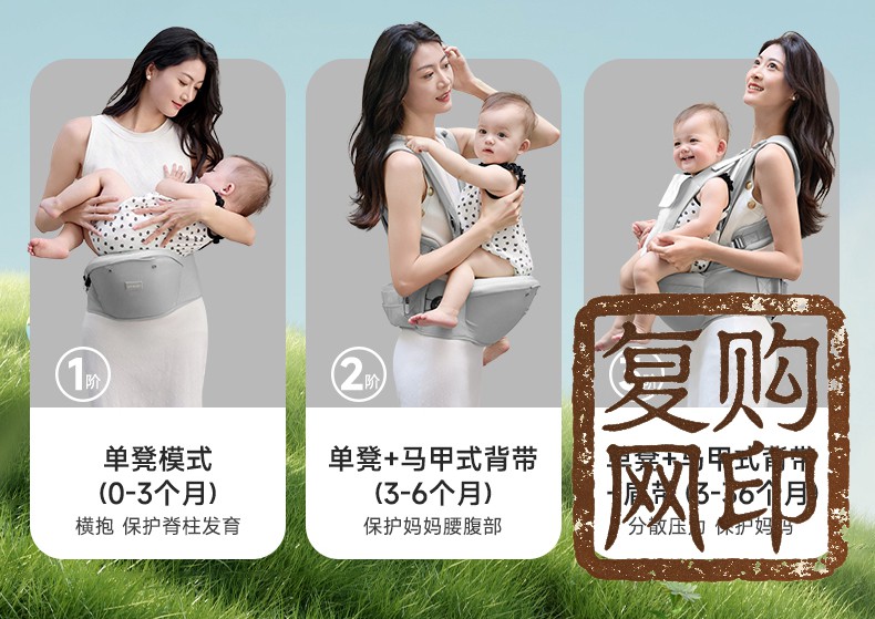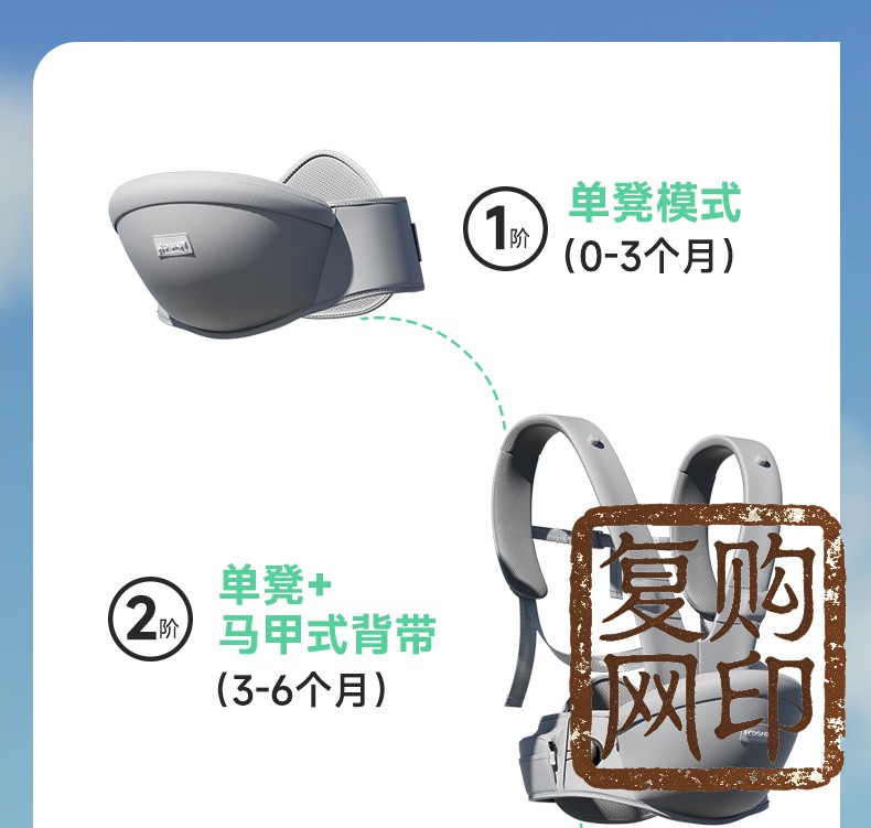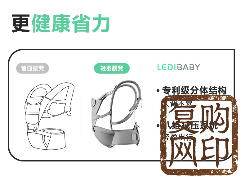 乐蒂宝贝、腰凳婴儿背带、二合一、轻便、四季多功能、透气、抱娃神器