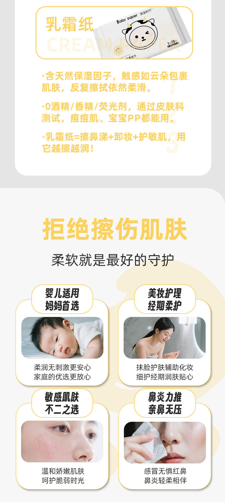宝宝时代、乳霜纸、婴儿、云柔巾、手口专用、超柔保湿纸