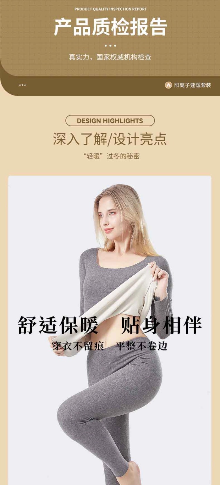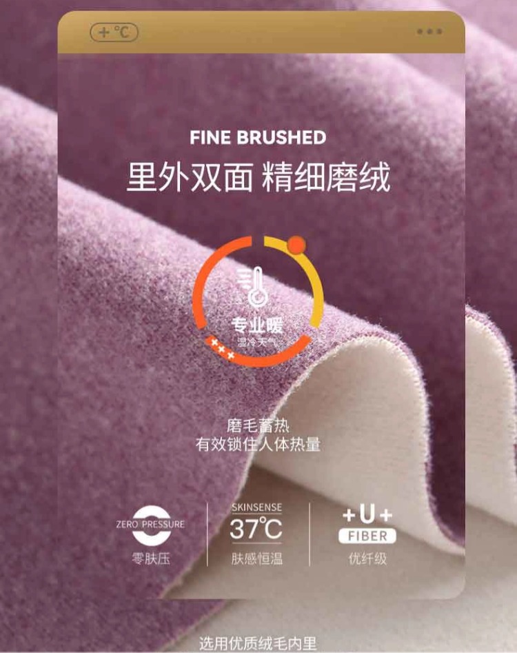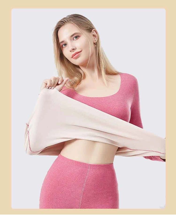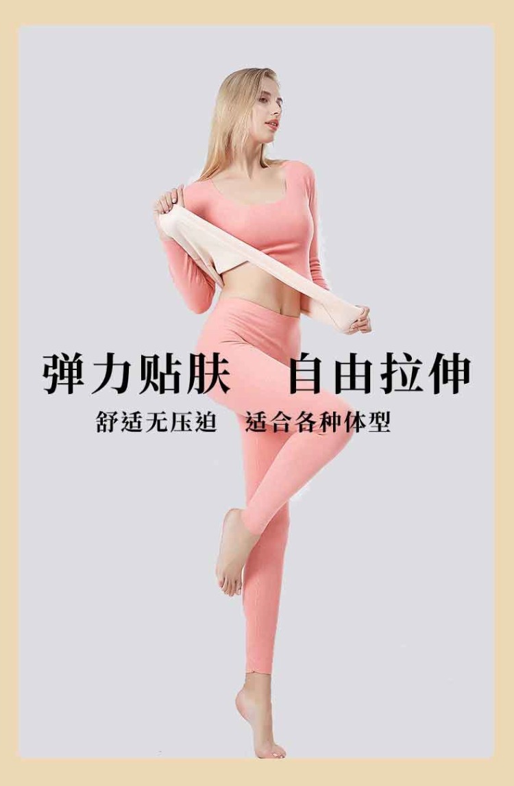 俞兆林、女士无痕保暖套装、双面磨毛、AB面德绒、冬内穿、女款加绒、修身