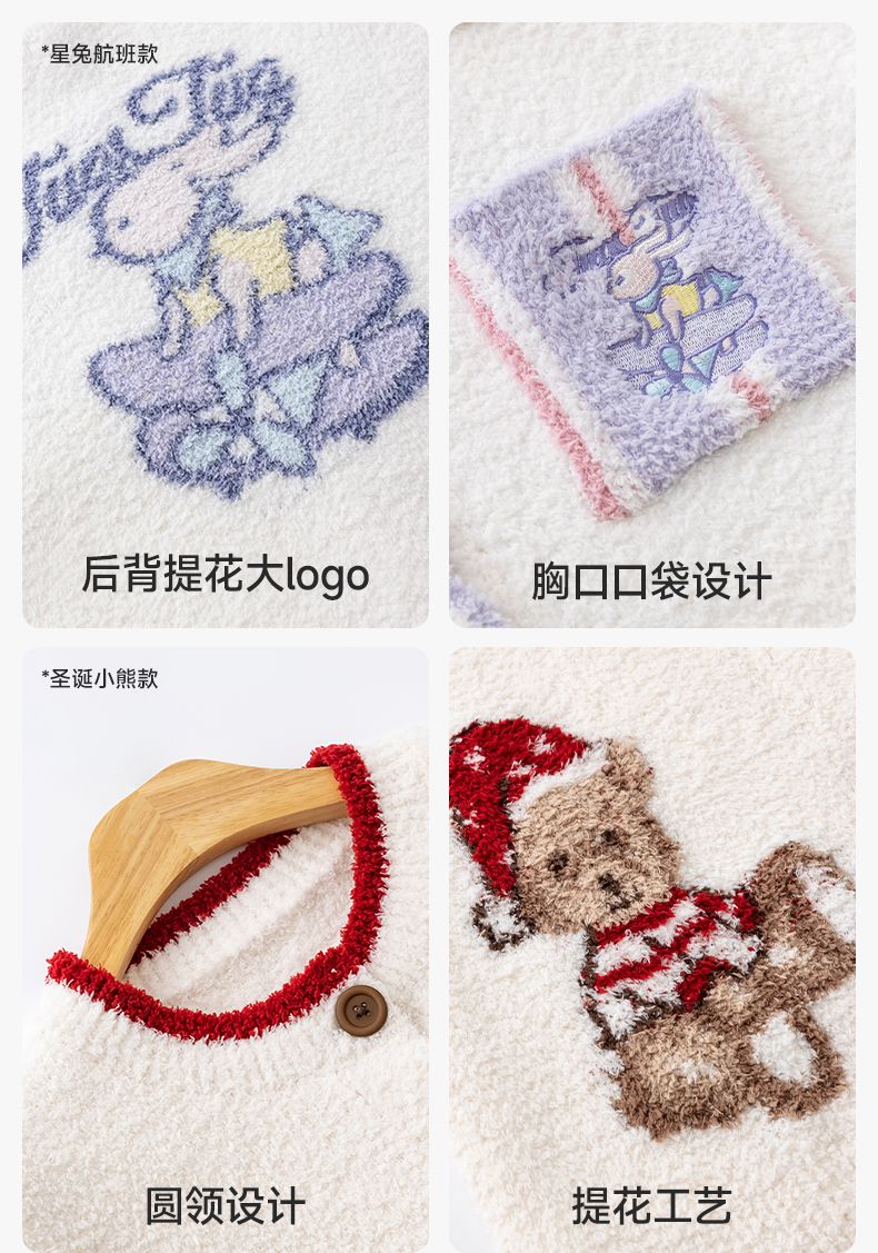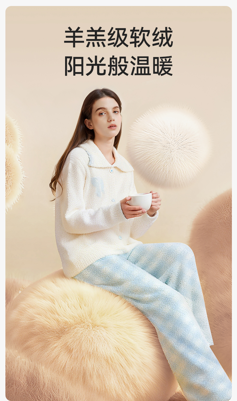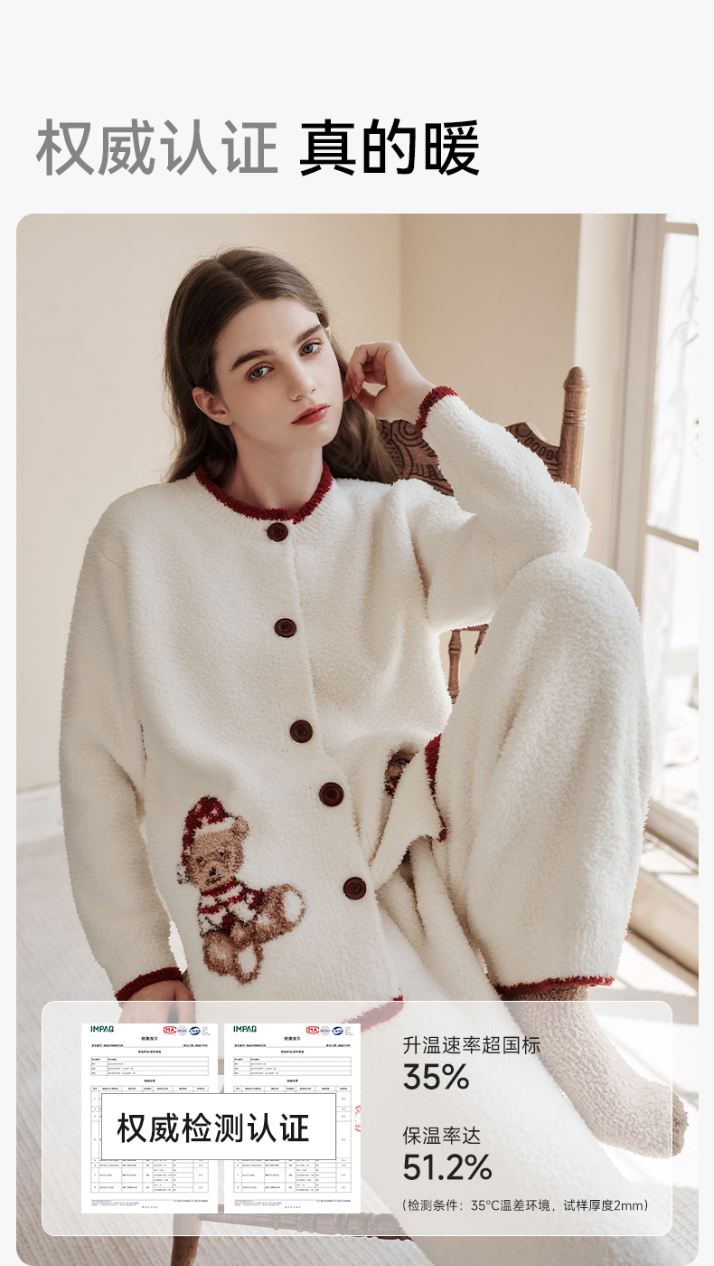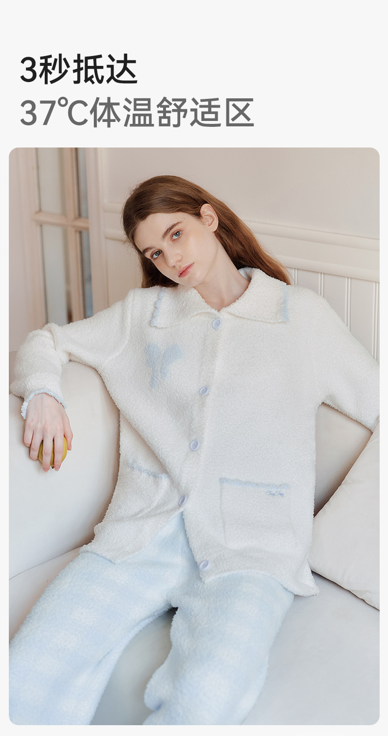 TugTug、半边绒、月子服、孕妇睡衣、女款、加厚加绒、保暖长袖家居服