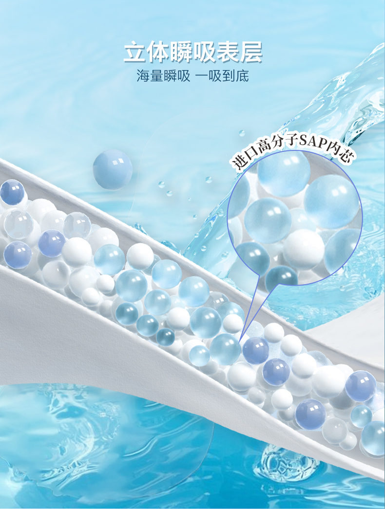完美呵护、蚕丝蛋白、弱酸面层、柔软顺滑、瞬吸透气、超薄、日用夜用