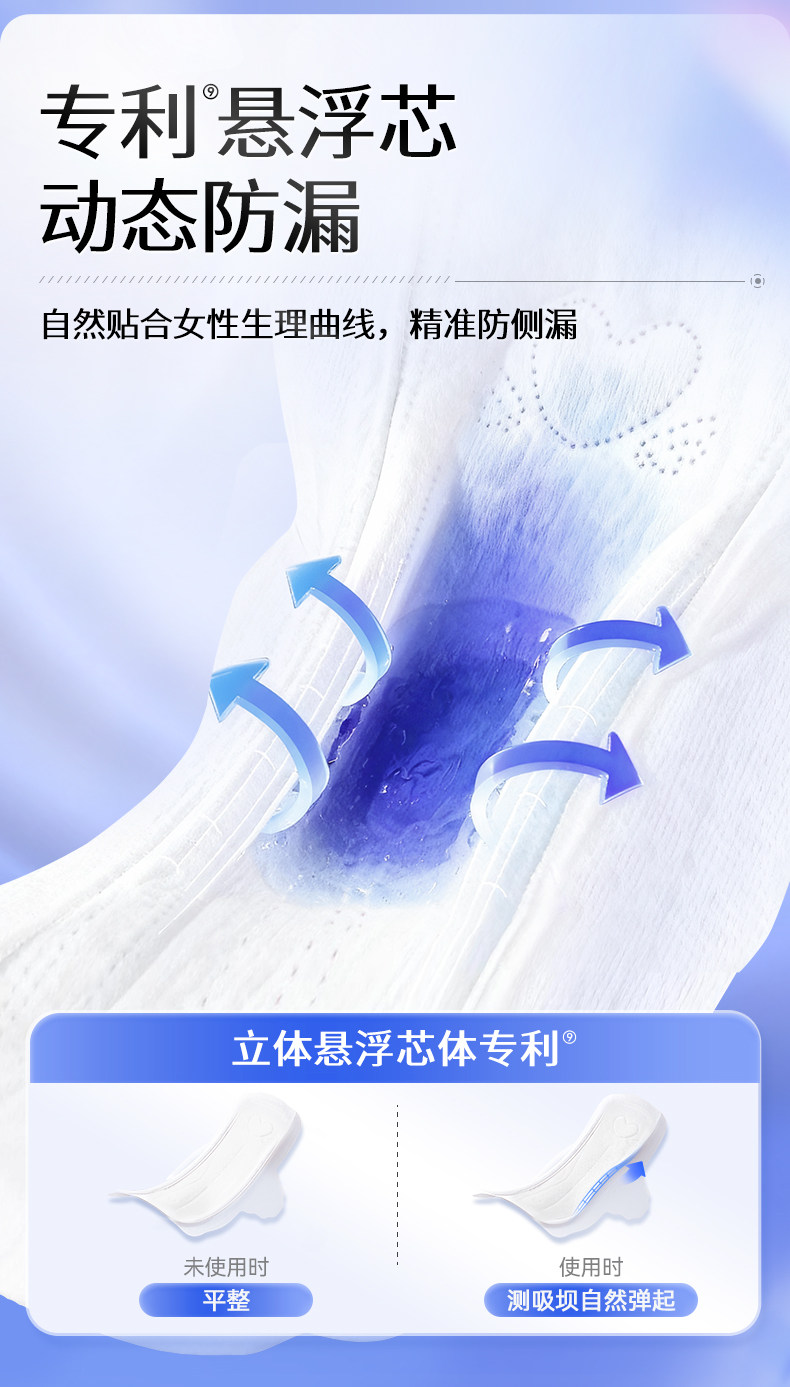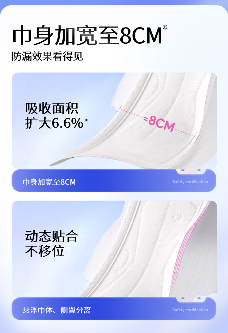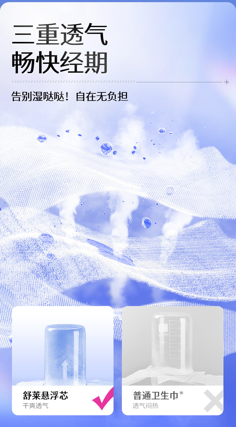 舒莱、消毒级卫生巾、99%抑菌、双护悬浮芯、加宽动态防侧漏、80片