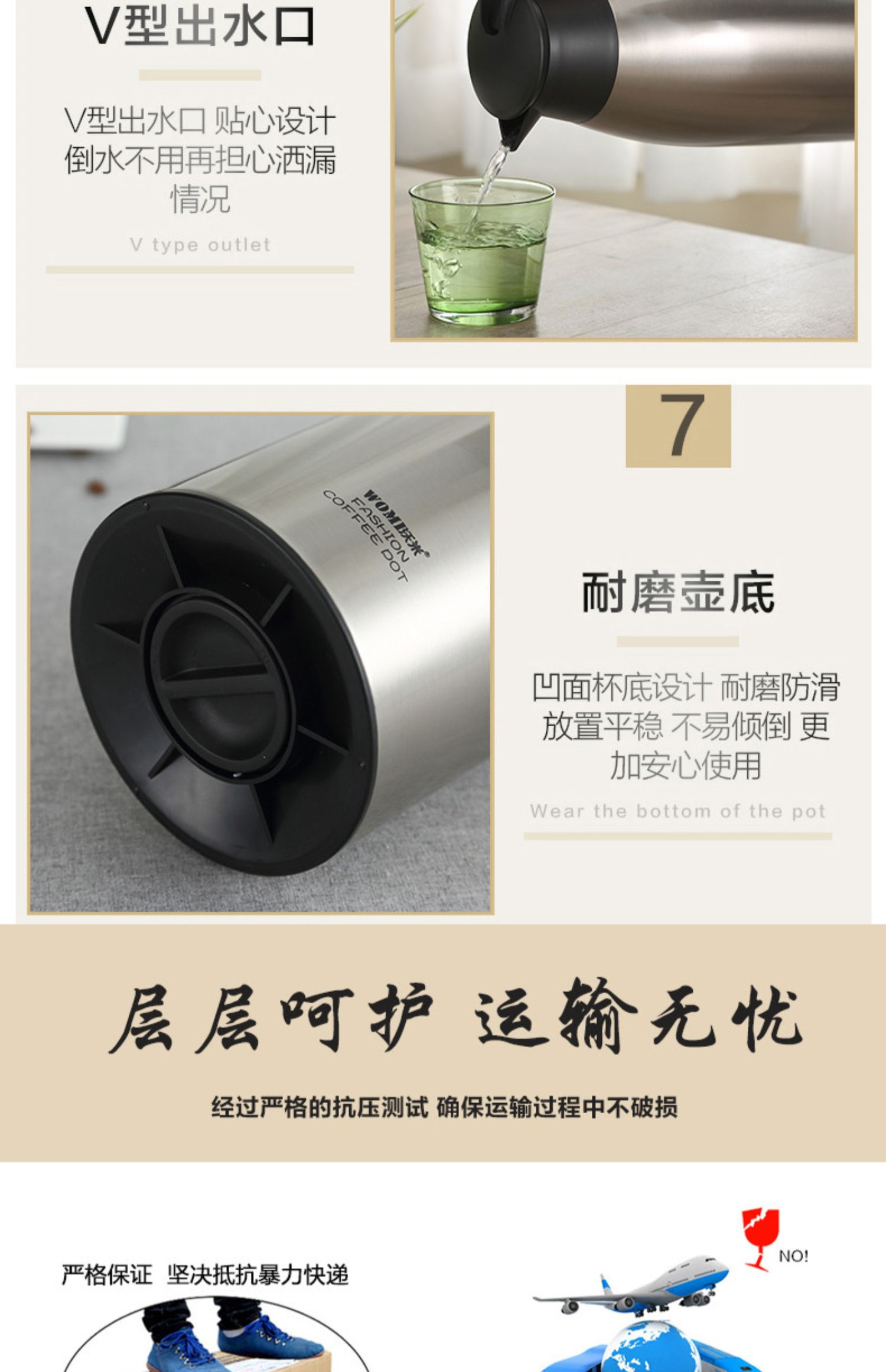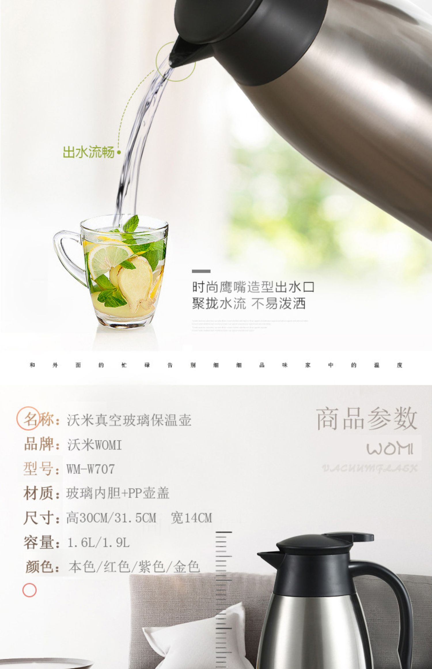 沃米保温水壶、家用热水瓶、暖水壶、保温瓶、不锈钢暖壶、大容量保温壶