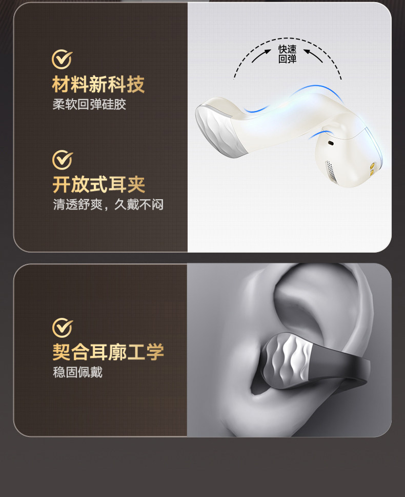 爱国者、蓝牙耳机、开放夹耳式、挂耳式、无线气传导、长续航