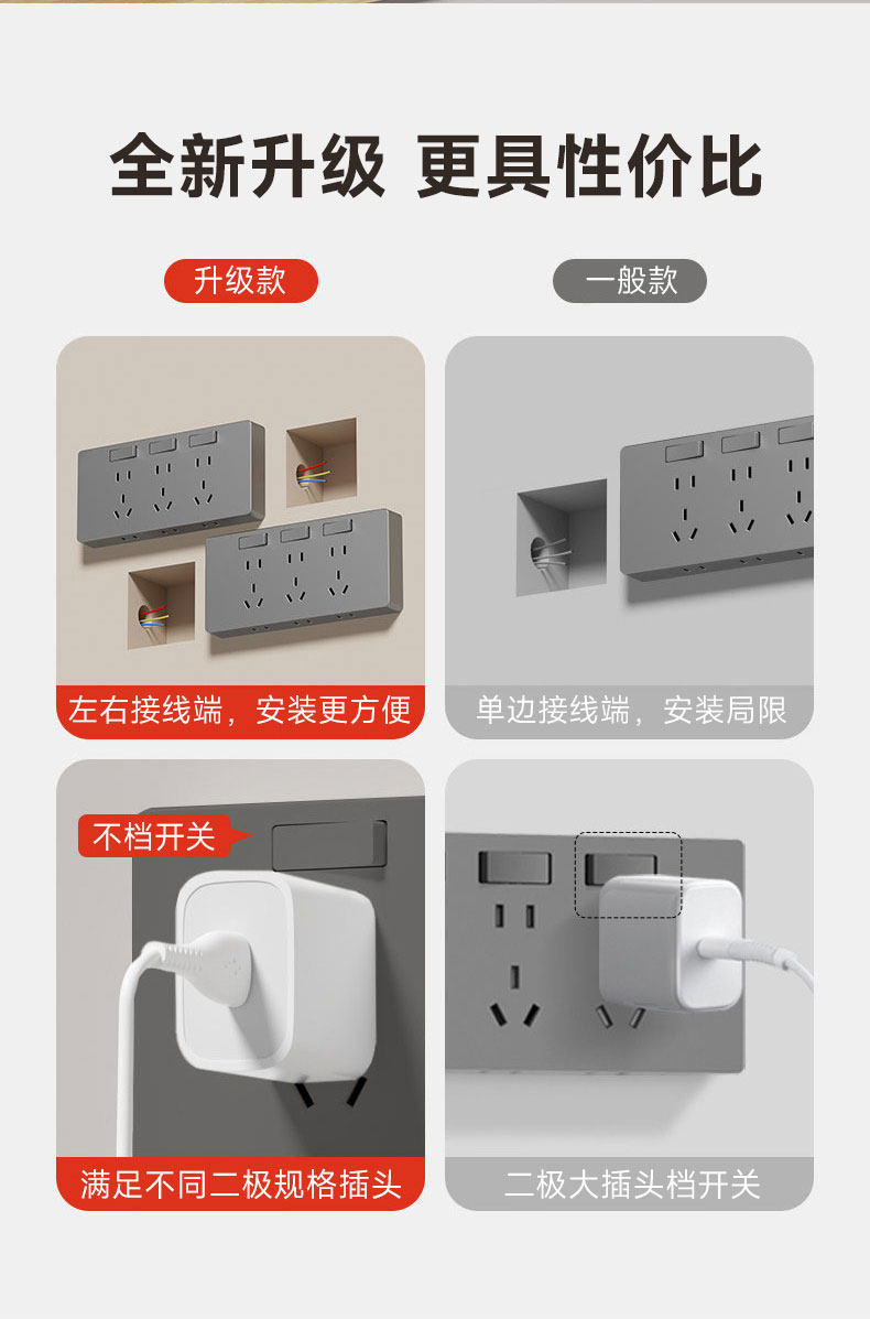 家用厨房专用插座拓展插排拓展插线板多插位壁挂多功能接线板