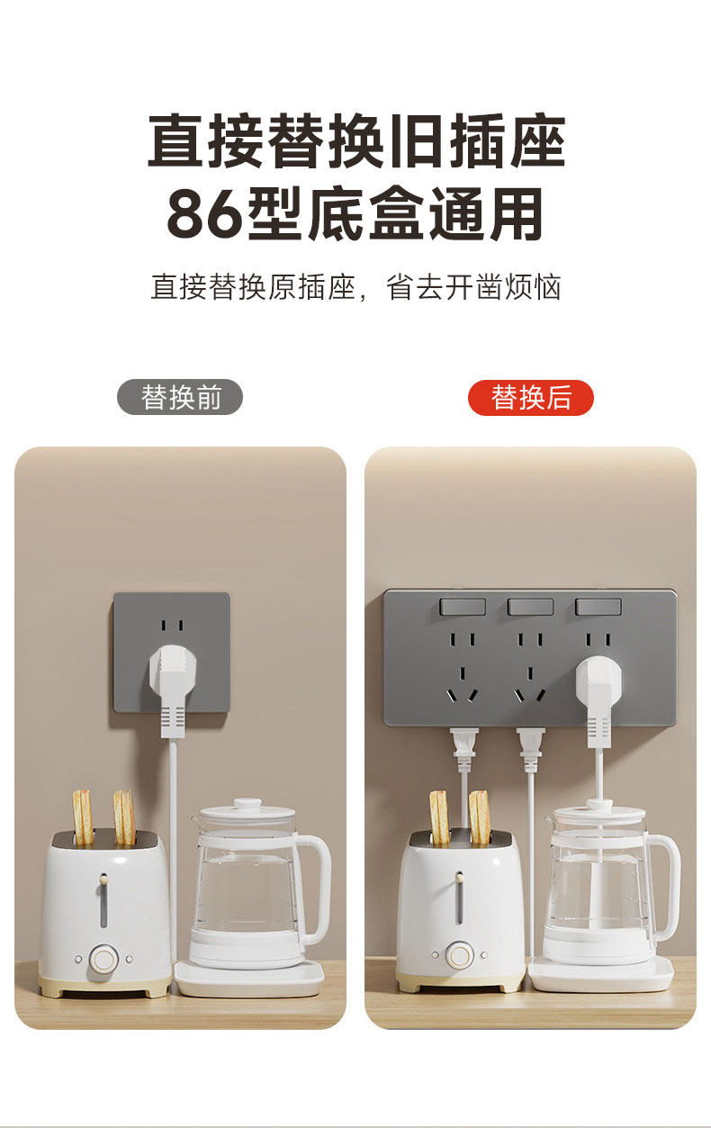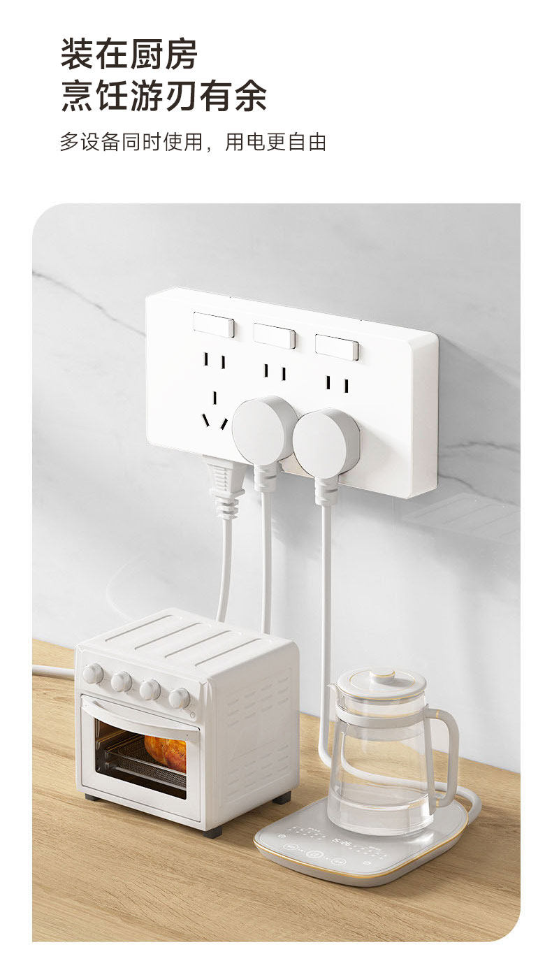 家用厨房、专用插座、拓展插排、多插位、壁挂、多功能接线板