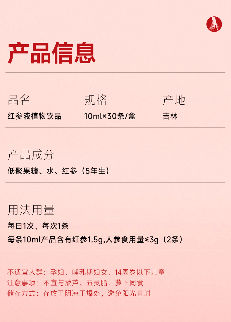 红参饮浓缩液 口服液 红参液 长白山精提液 礼盒 正品 官方旗舰店