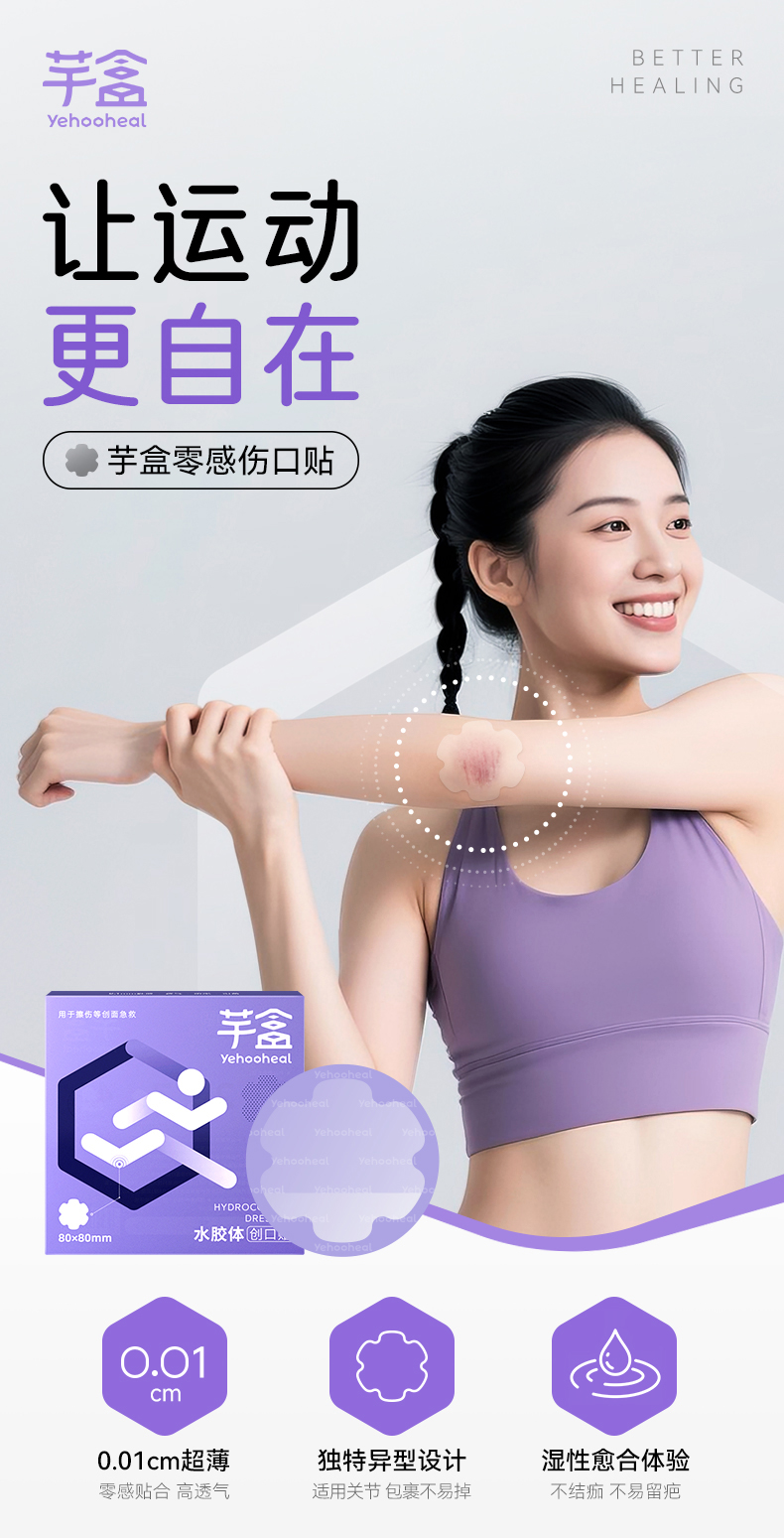 芋盒、医用水胶体敷料、湿性愈合、零感贴、创可贴、医用防水、人工皮