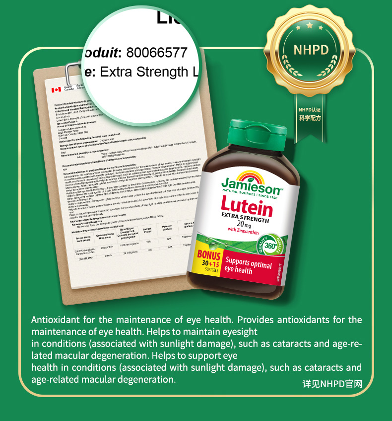 Jamieson健美生官方正品叶黄素胶囊呵护眼睛20mg