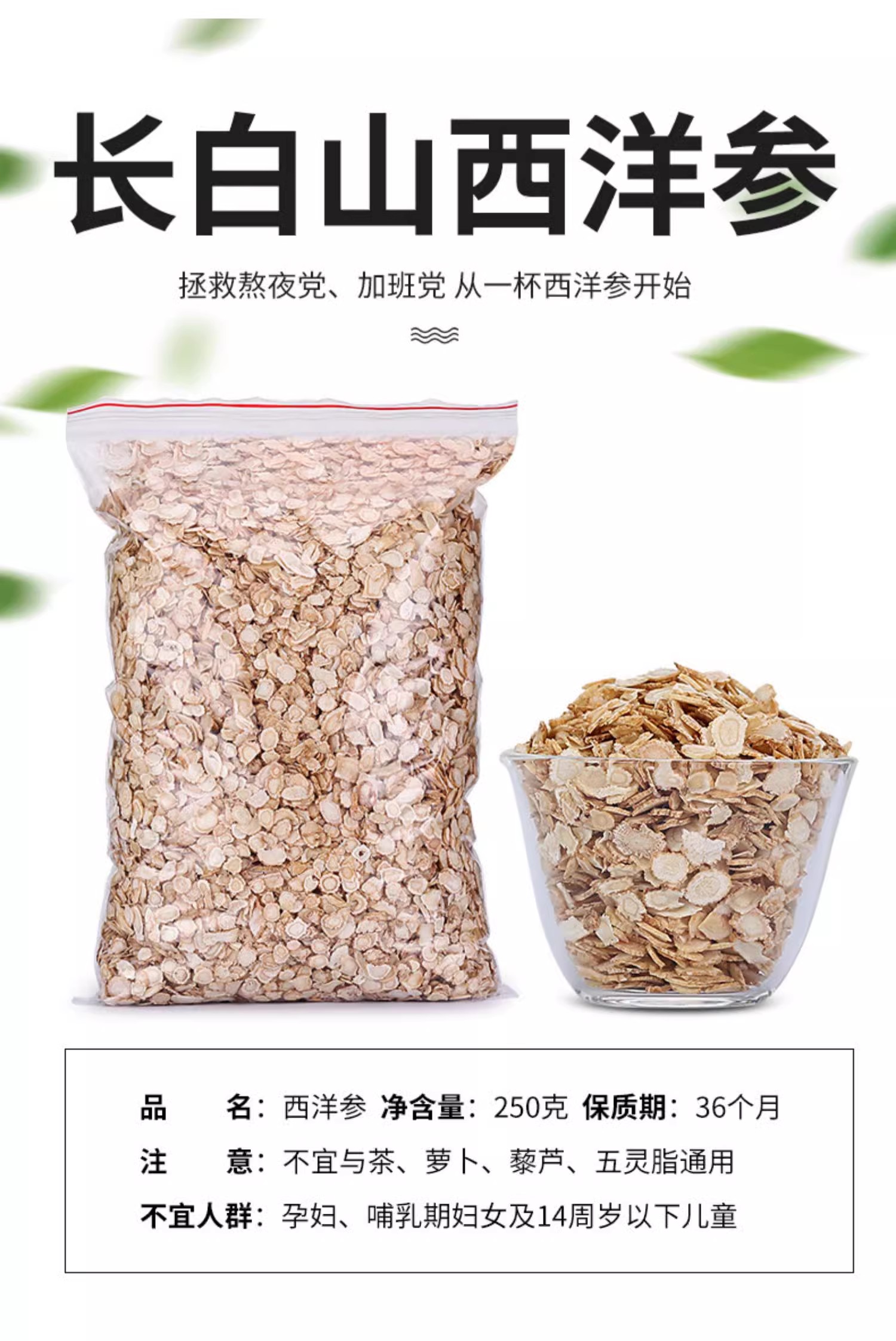 西洋参切片、长白山正品、含片即食、花旗参片、搭配枸杞、非特级