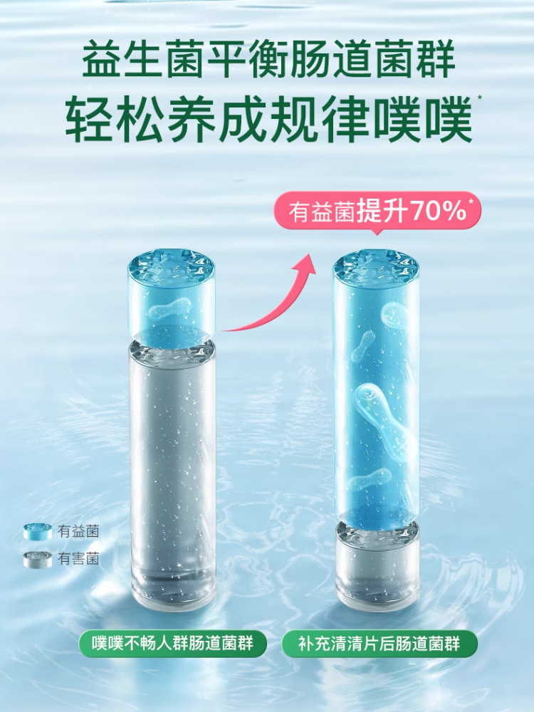 百草园清清片、益生菌、成人、膳食纤维、肠道便秘缓解、促便排