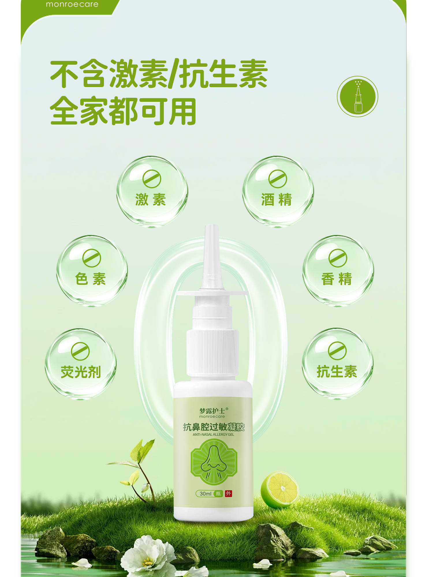 梦露护士、鼻炎喷雾剂、医用、鼻腔过敏凝胶、急慢性哮喘、鼻塞神器、鼻舒通