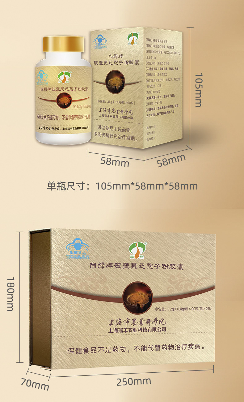 上海农科院尚绿金盒破壁灵芝孢子粉胶囊有助于增强免疫力90粒/瓶