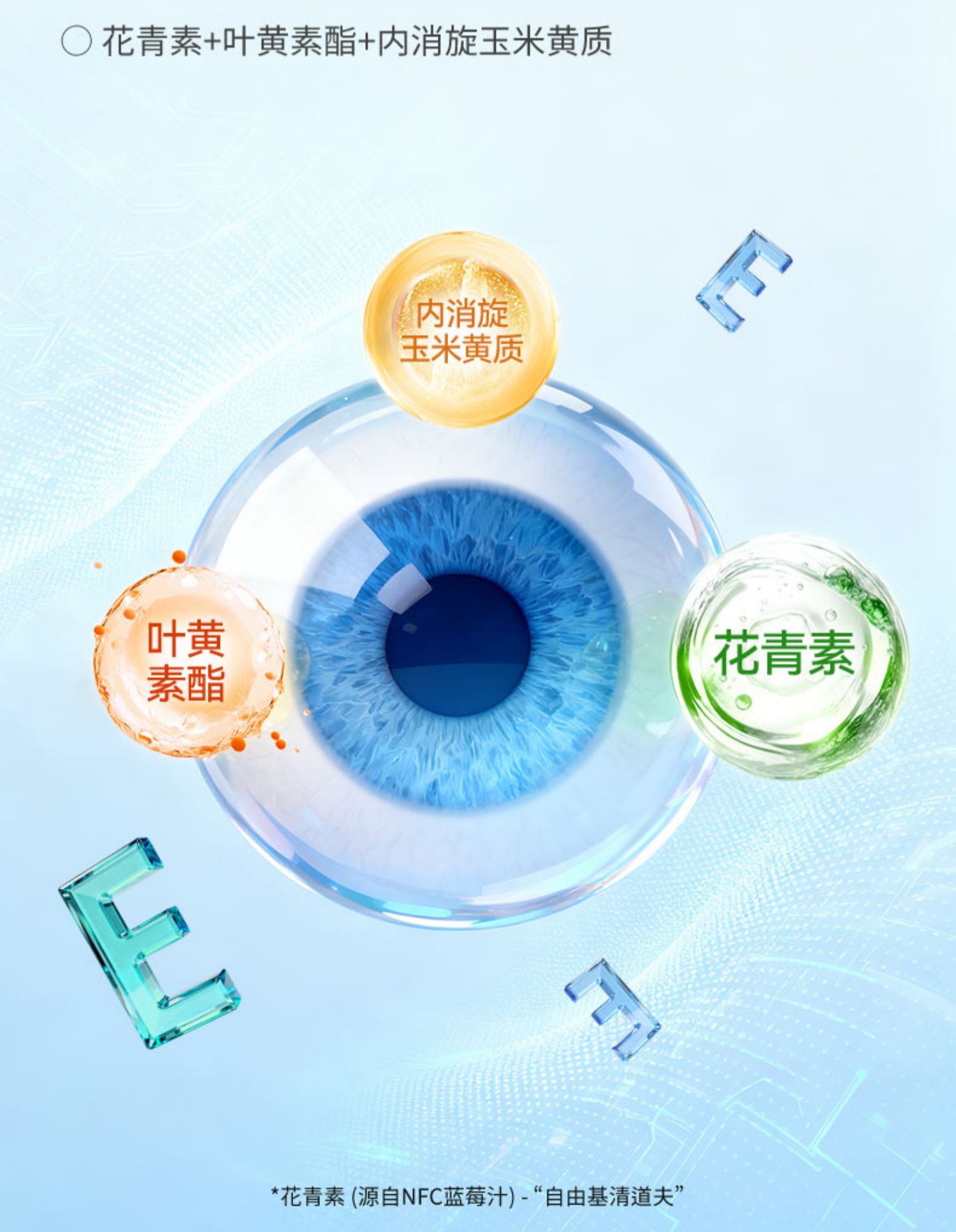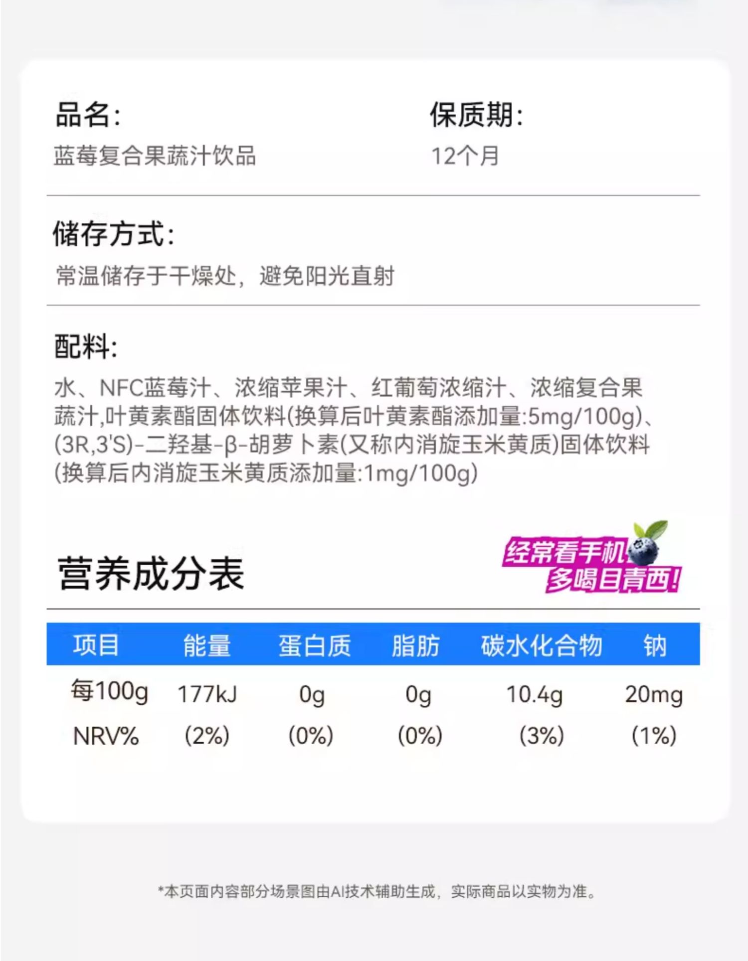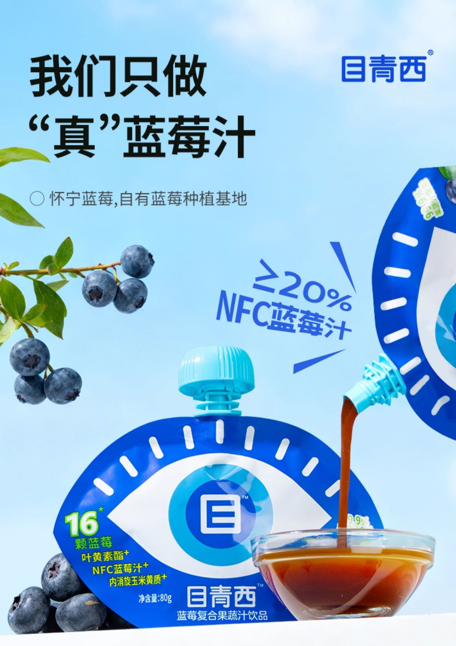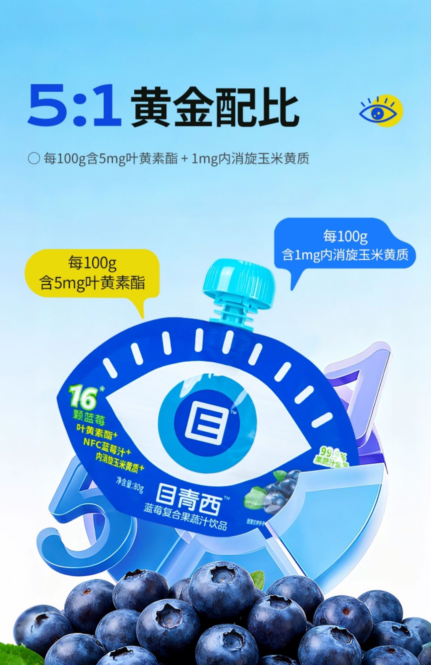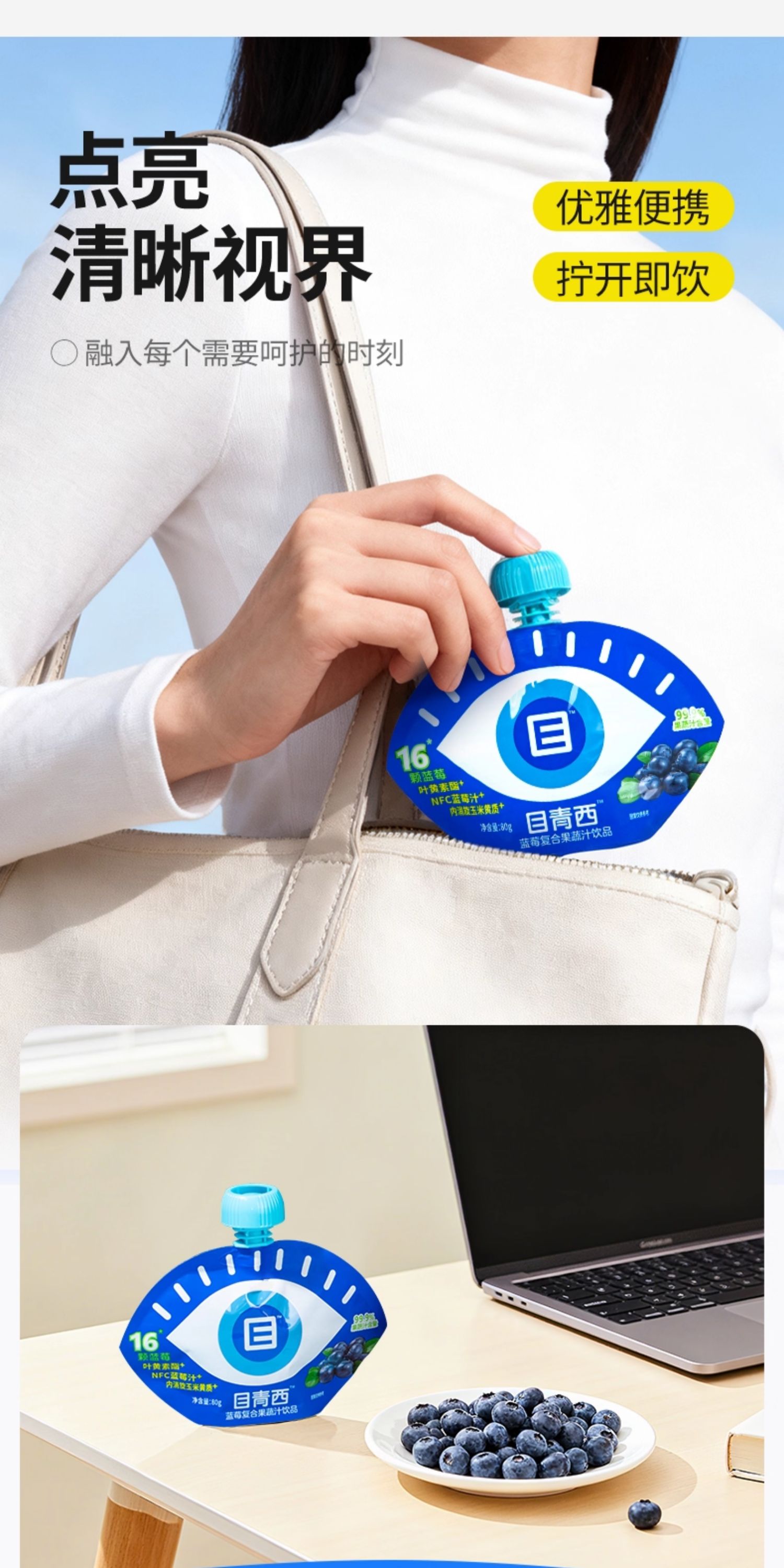 目青西、叶黄素酯、NFC蓝莓汁、饮料、营养、复合果蔬汁、80g*4袋