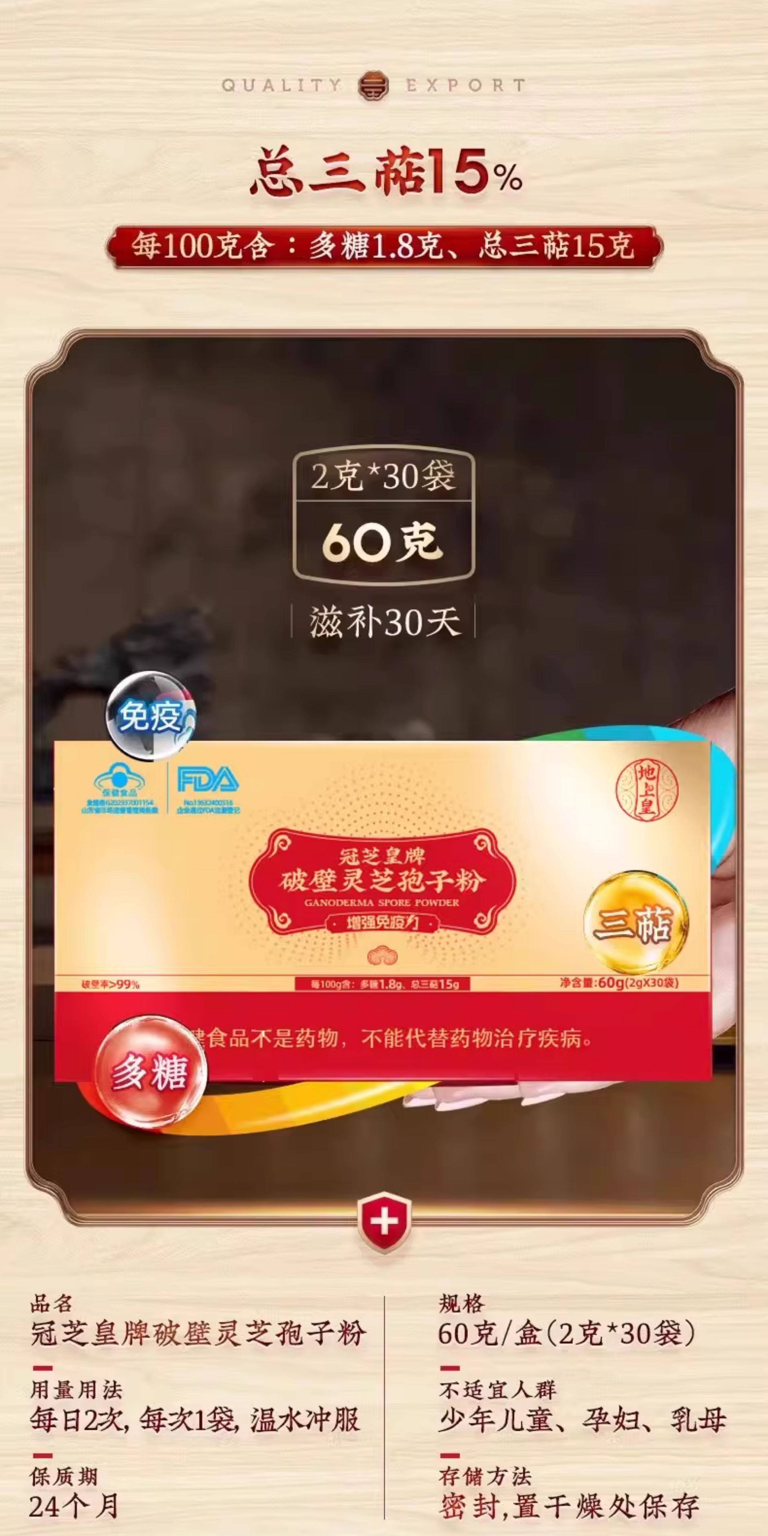 地上皇、破壁灵芝孢子粉、官方旗舰店、正品、60克装、月用量
