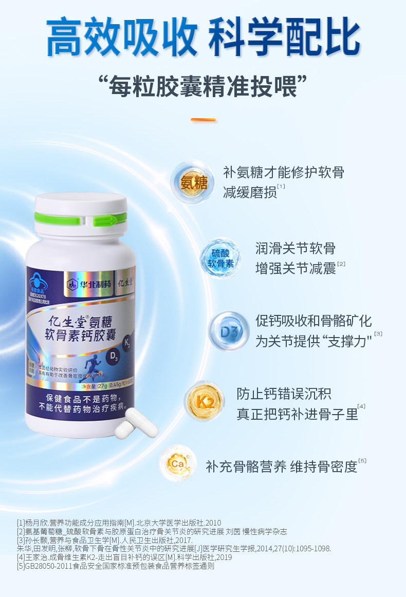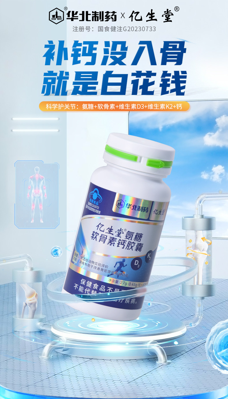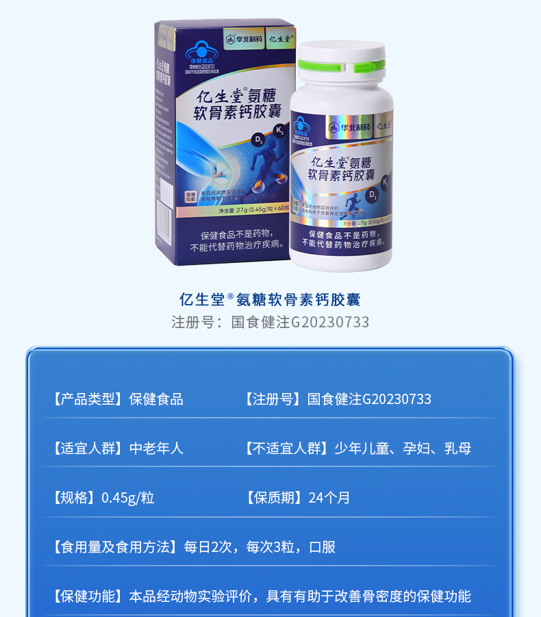 亿生堂、氨糖软骨素钙胶囊、骨补钙、中老年人、护关节、疼痛缓解、正品官方旗舰店