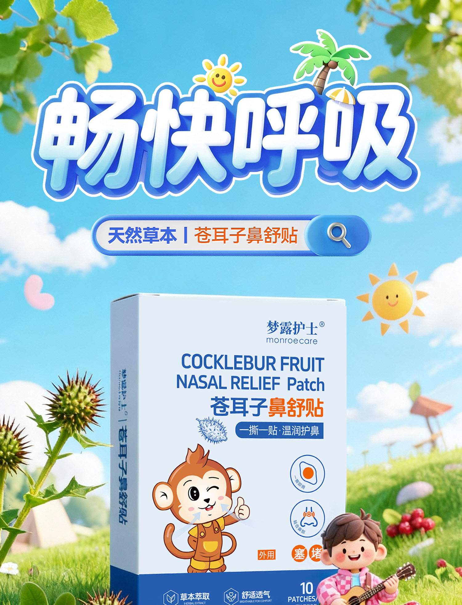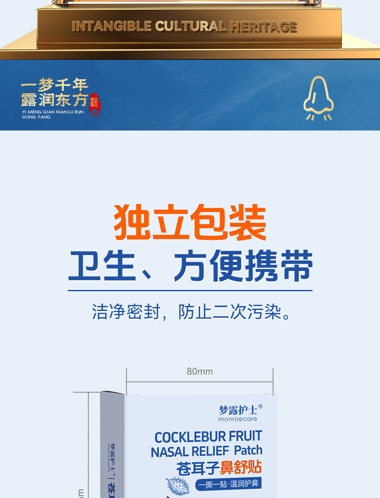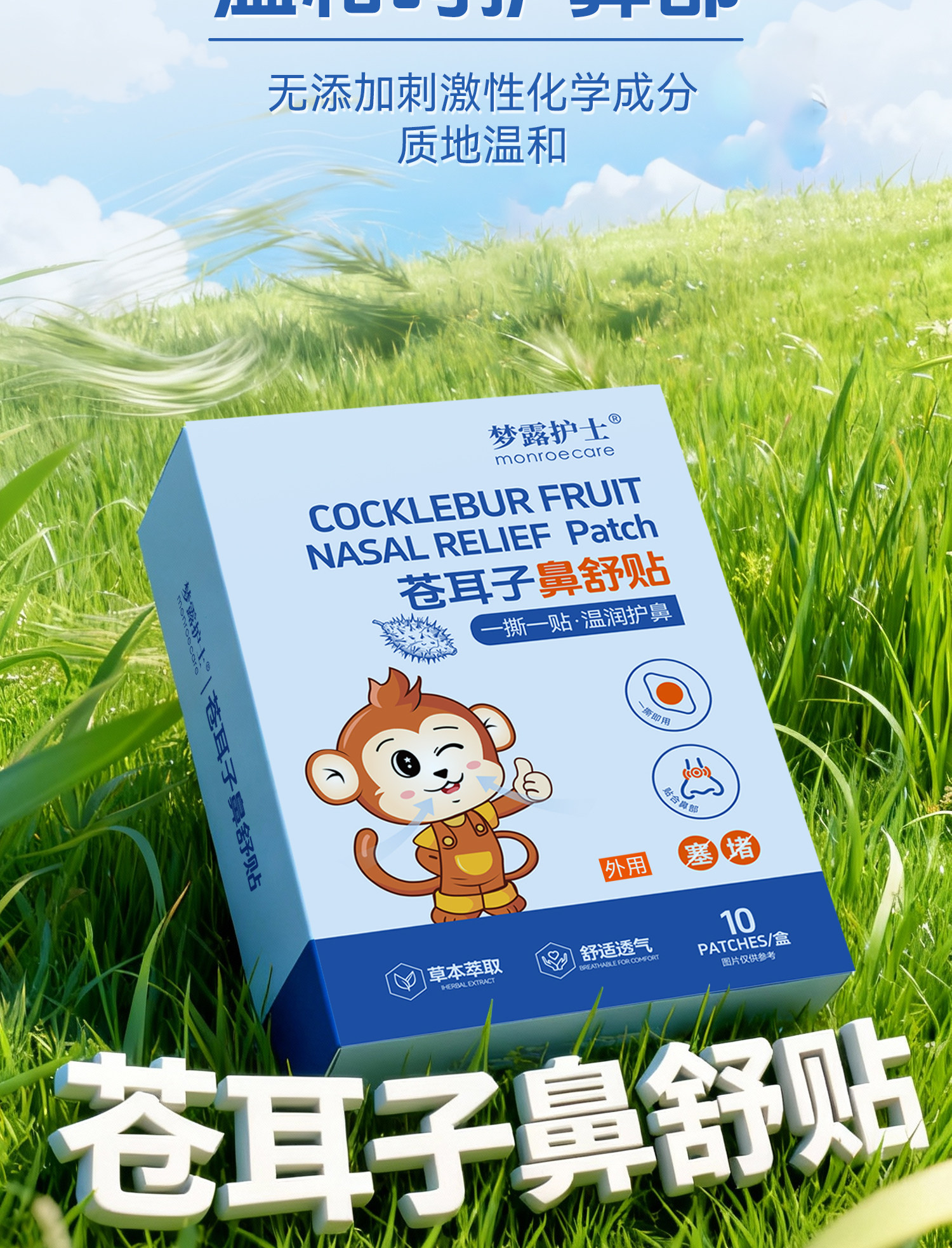 梦露护士、苍耳子鼻舒贴、透气蜂蜜贴、鼻塞神器、儿童成人适用、非遗