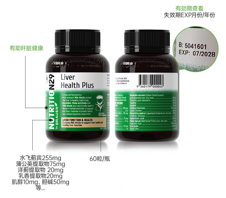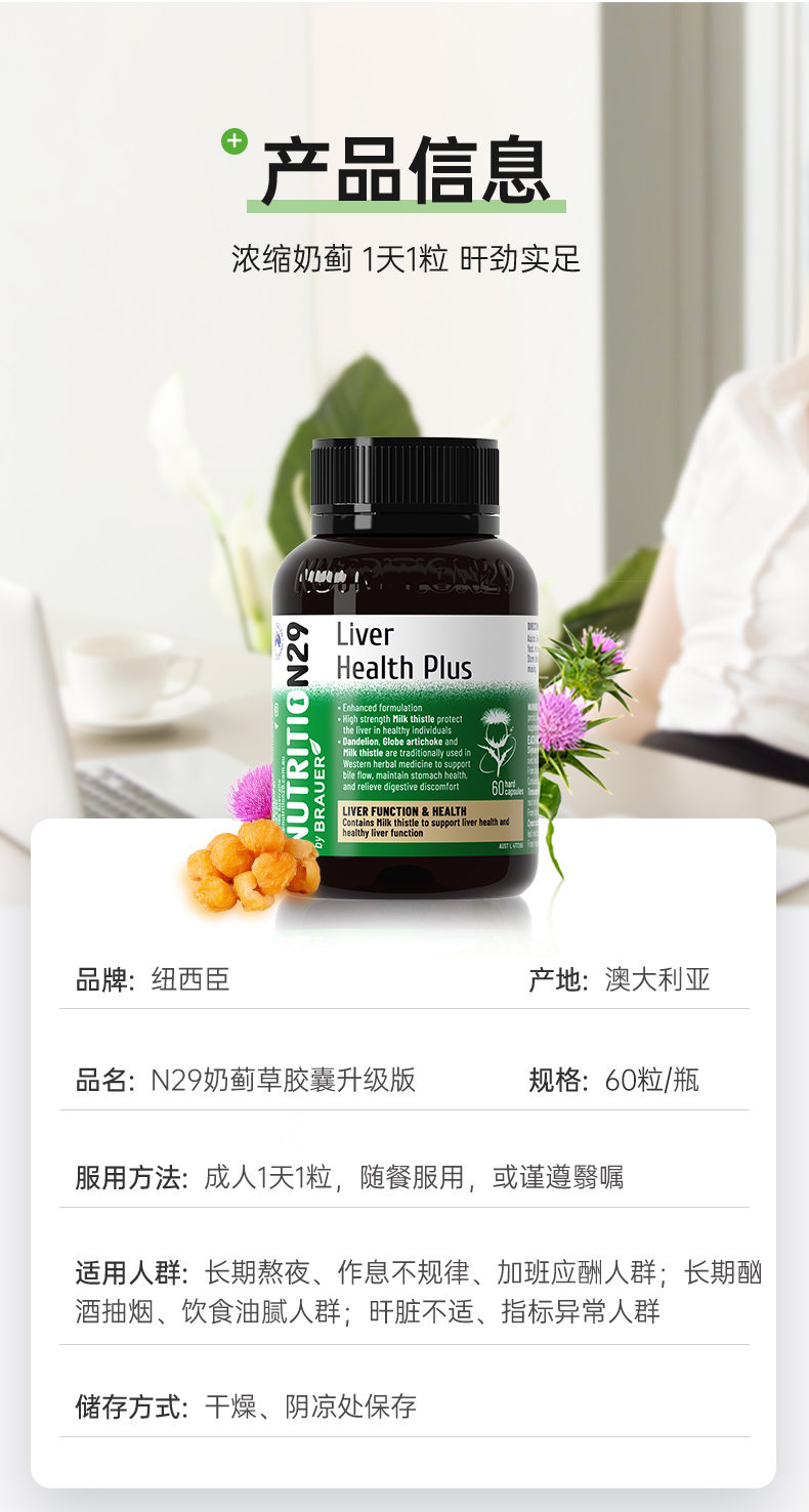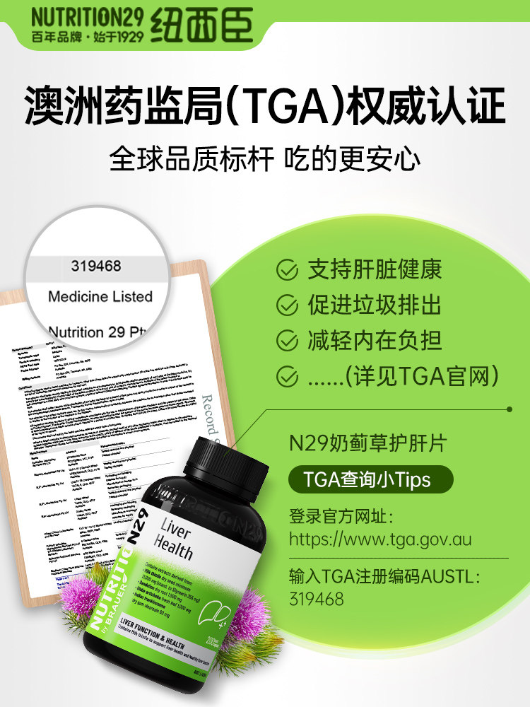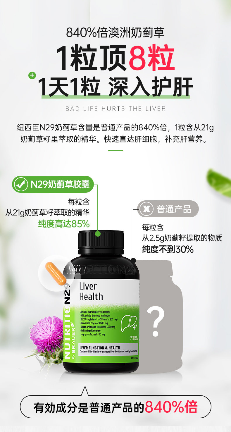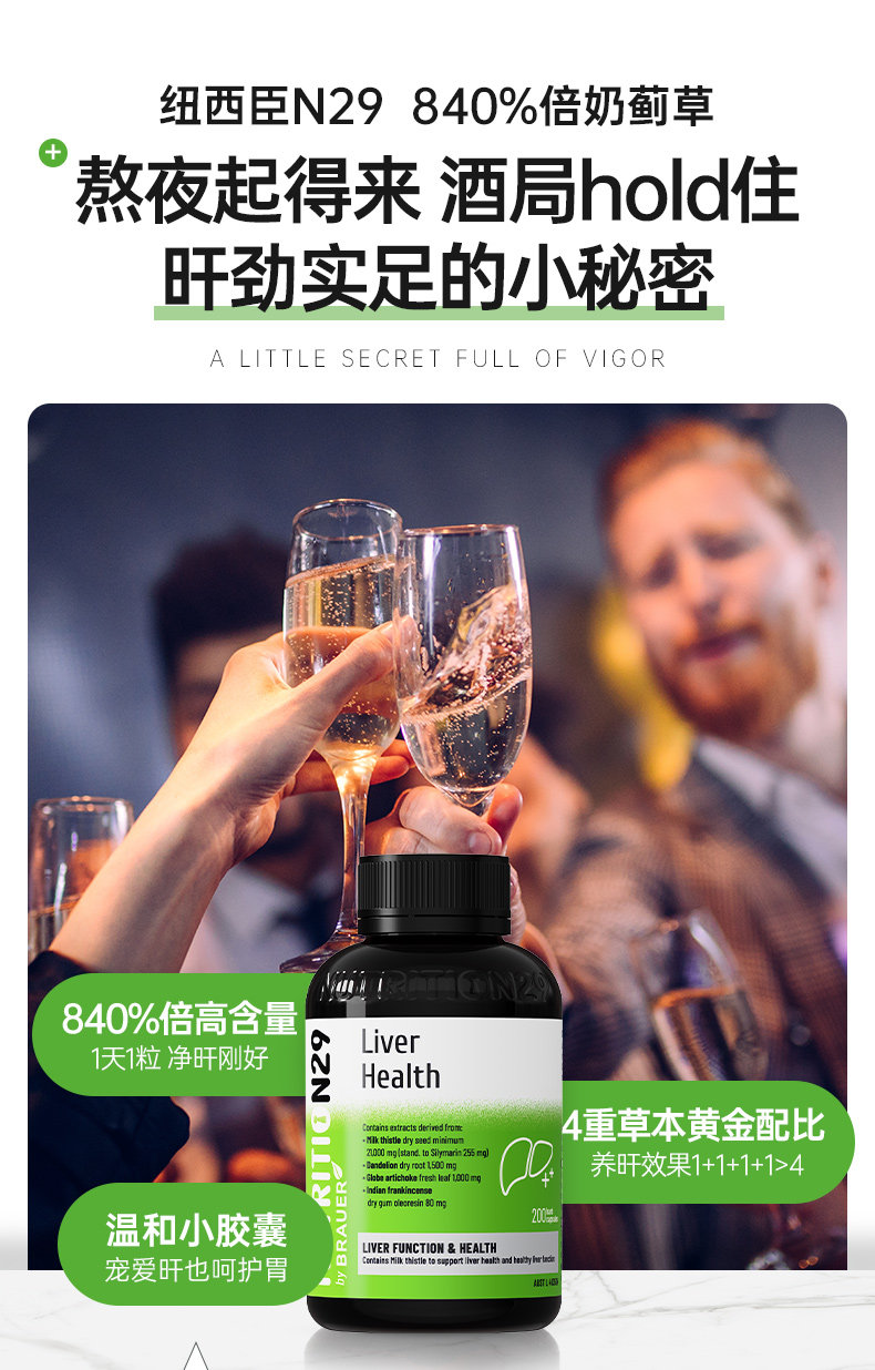 N29纽西臣护肝片 奶蓟草水飞蓟熬夜解酒护肝进口官方旗舰店正品