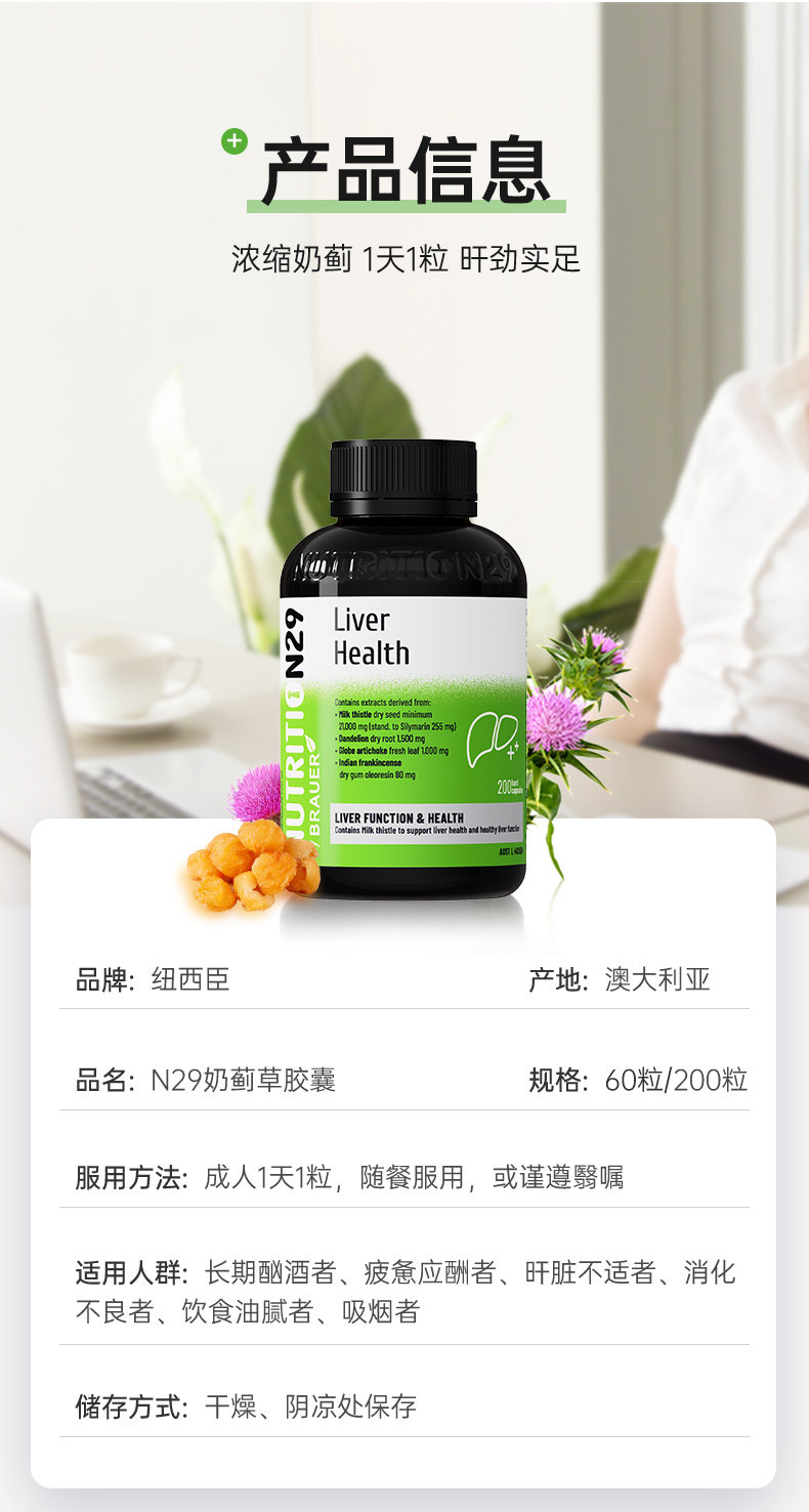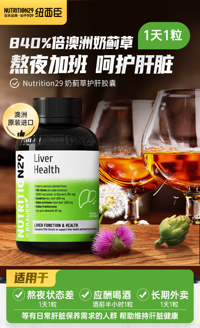 N29纽西臣 护肝片 奶蓟草 水飞蓟 熬夜解酒 进口正品