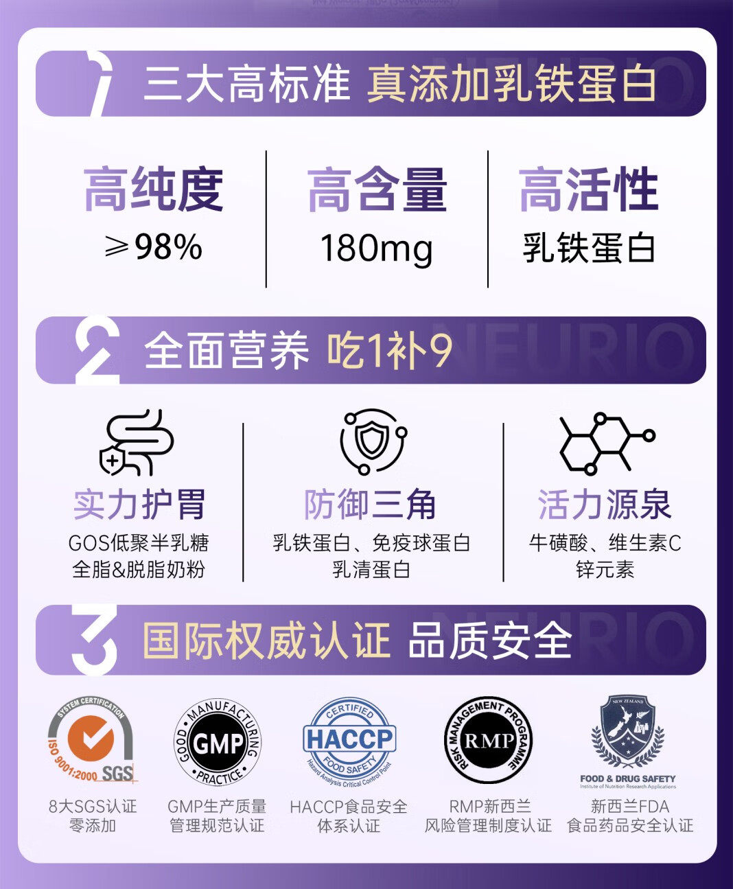 【纽瑞优官方旗舰店】Neurio纽瑞优乳铁蛋白免疫版免疫球蛋白180g