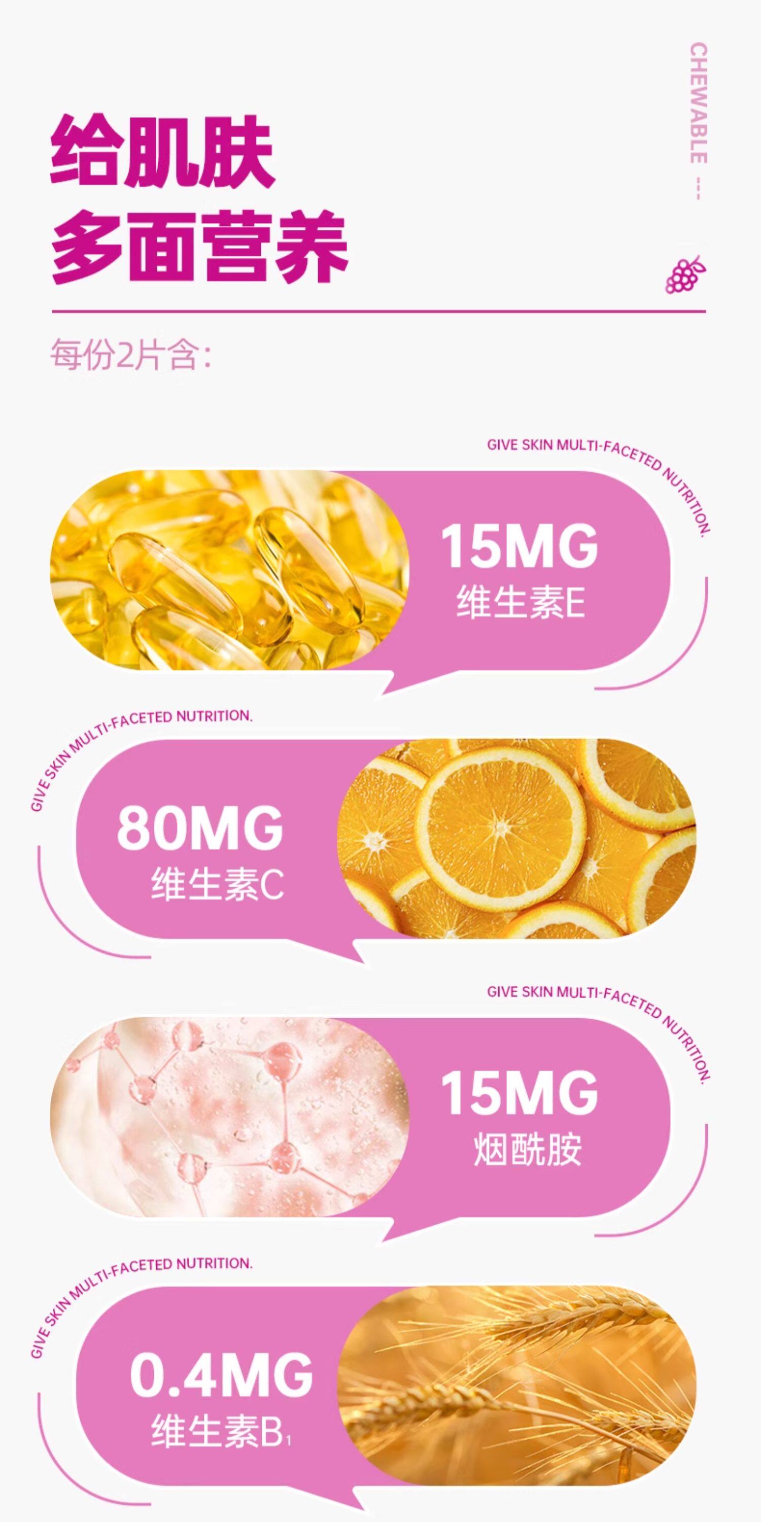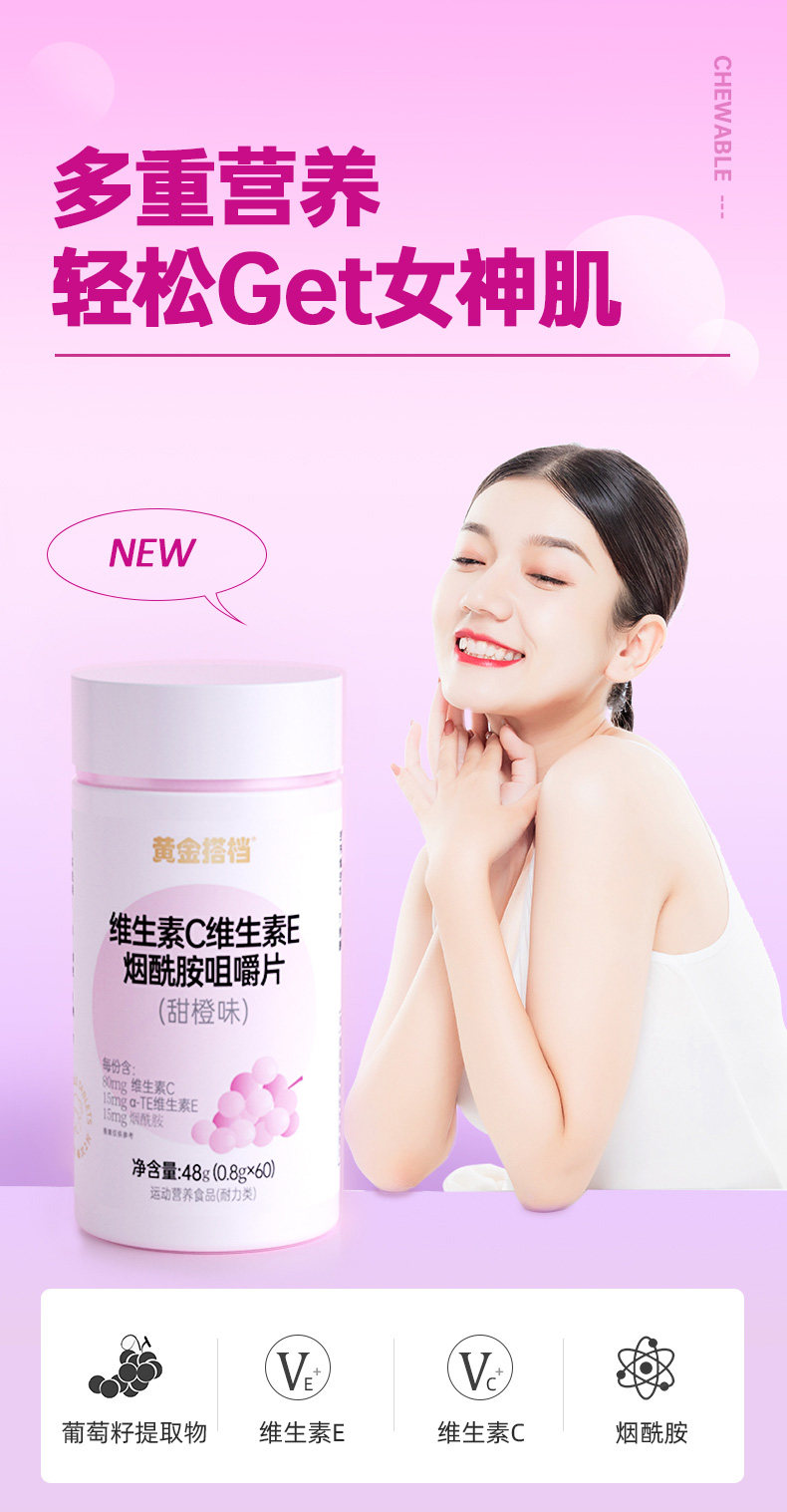 黄金搭档维生素C维生素E烟酰胺咀嚼片男女维C维E葡萄籽提取物正品