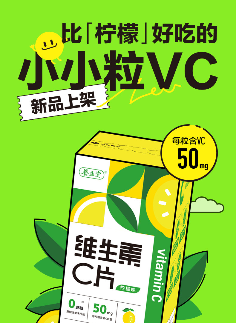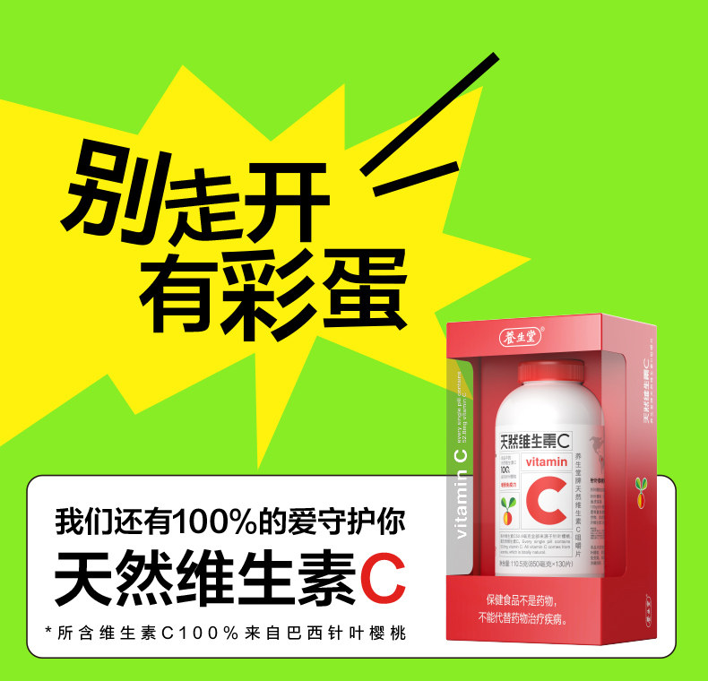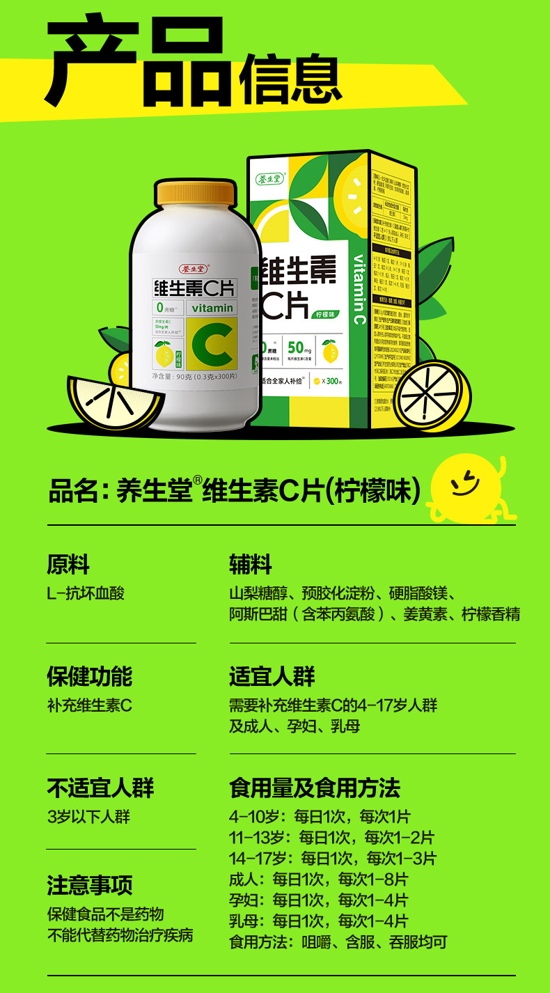 养生堂、vc、300片、维生素C咀嚼片、非泡腾片、官方旗舰店