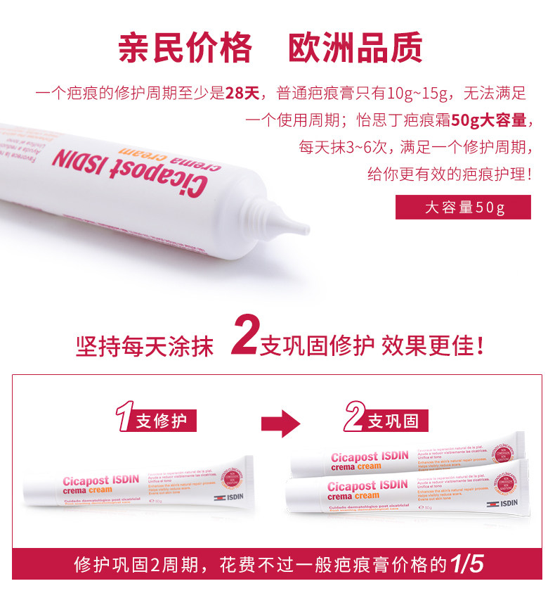 ISDIN怡思丁疤痕膏凝胶修复遮盖淡化痘印修复遮盖50g