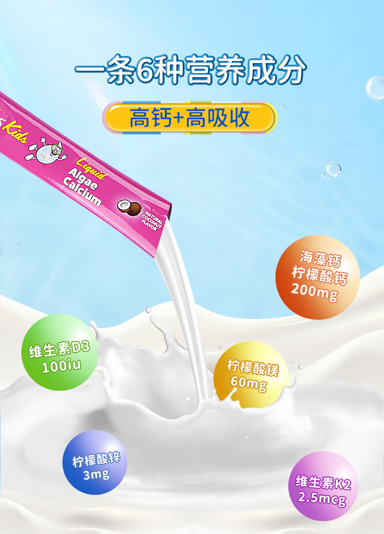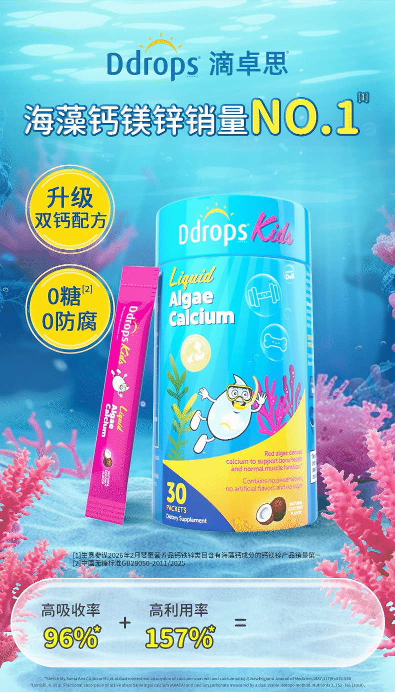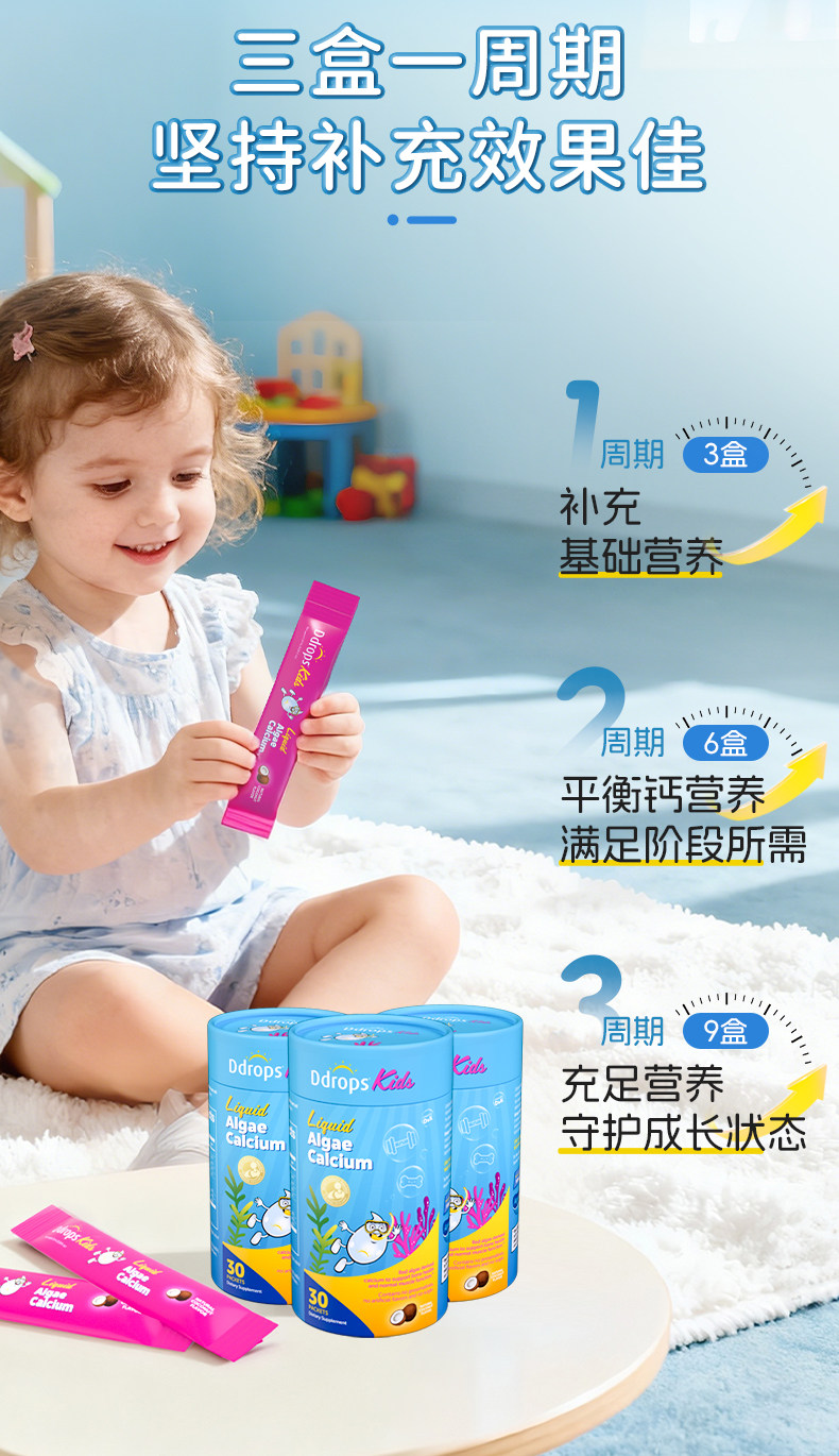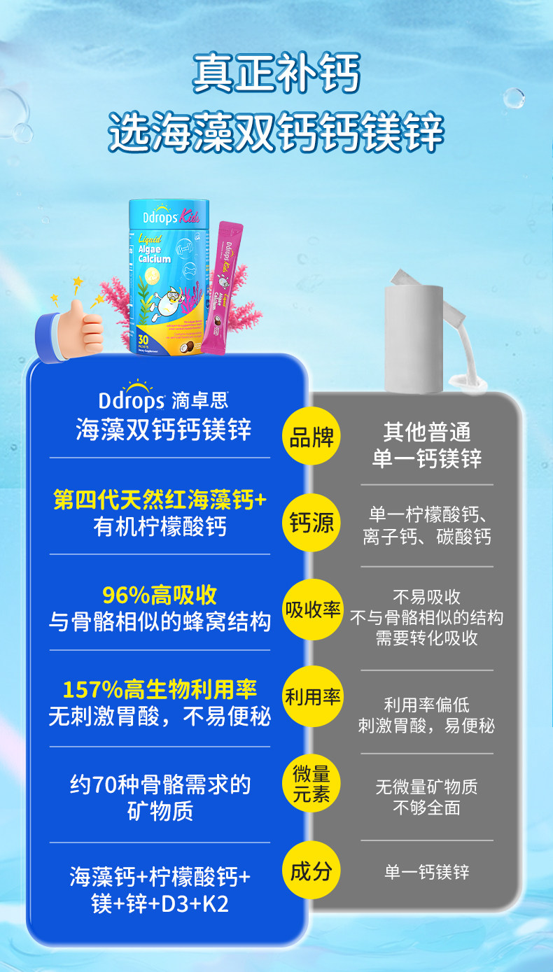 Ddrops滴卓思、钙镁锌、儿童补钙、维生素D3、婴幼儿、海藻钙液体钙