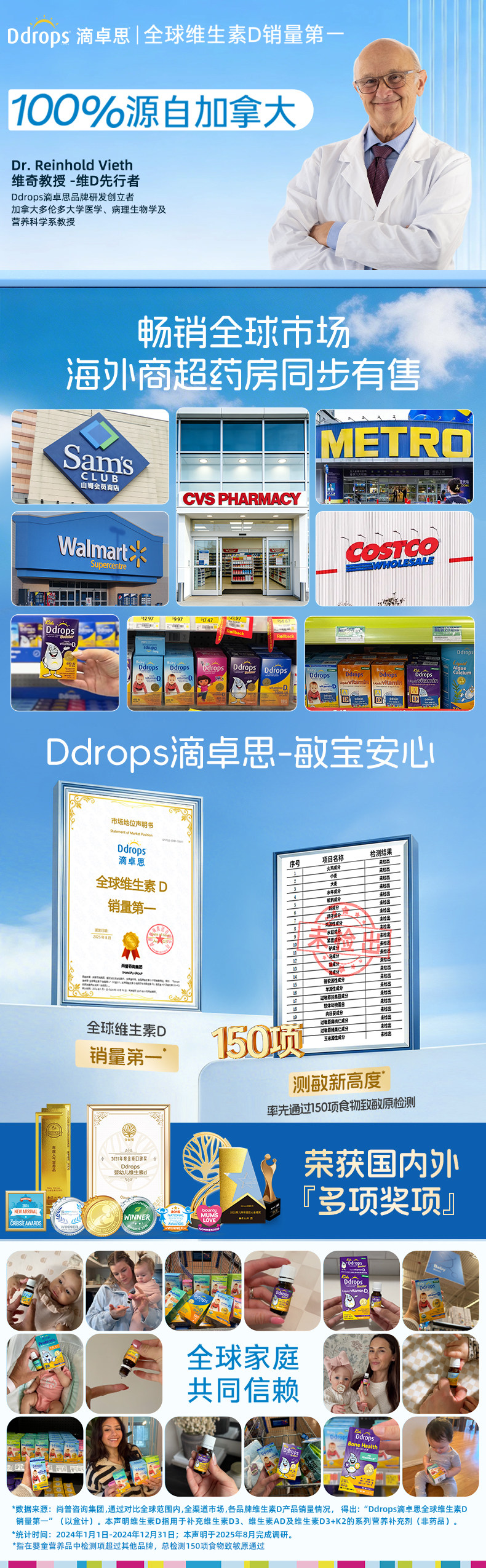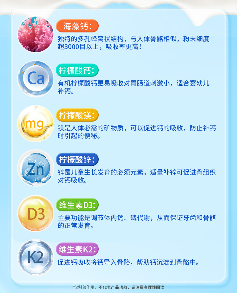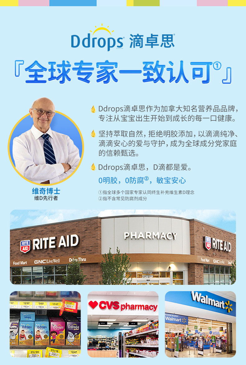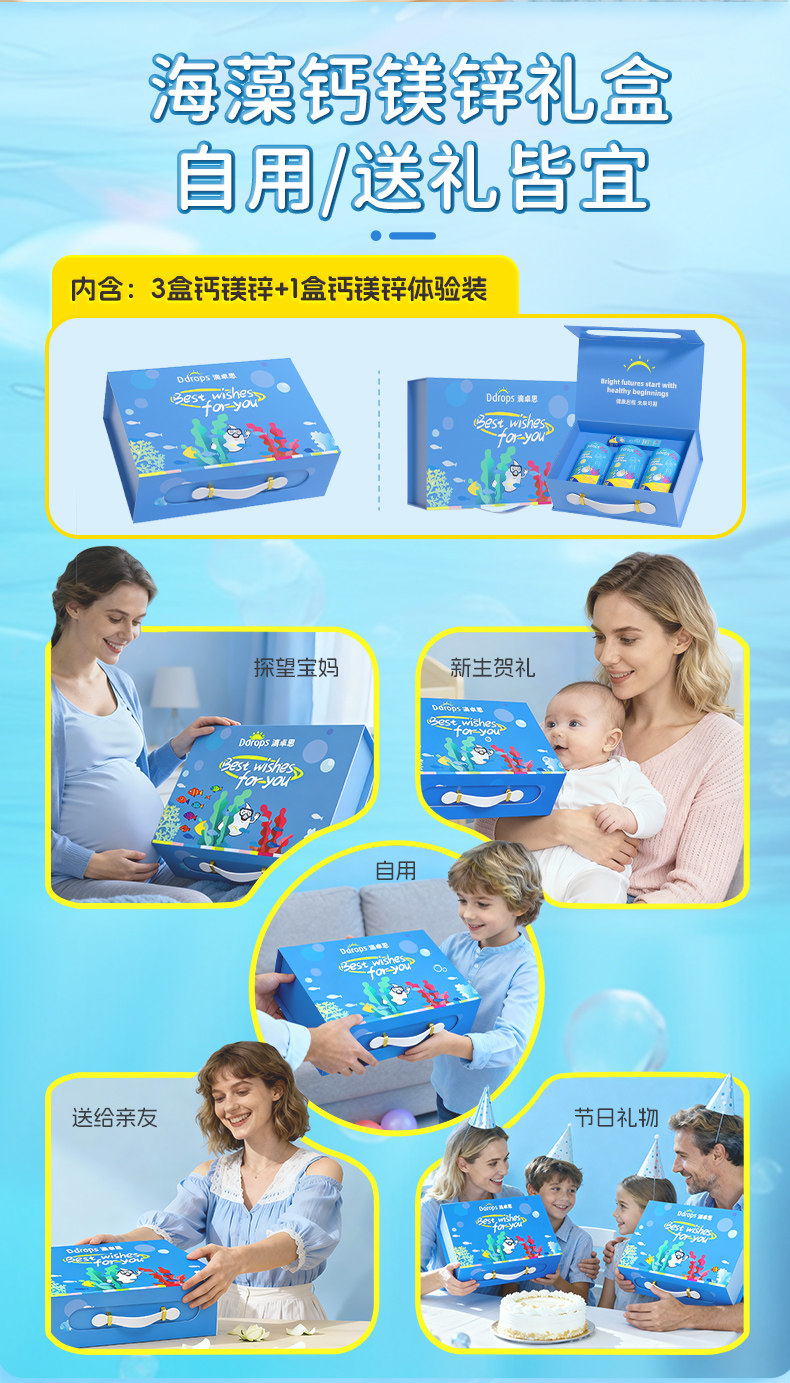 Ddrops滴卓思、钙镁锌、儿童补钙、维生素D3、婴幼儿、海藻钙液体钙