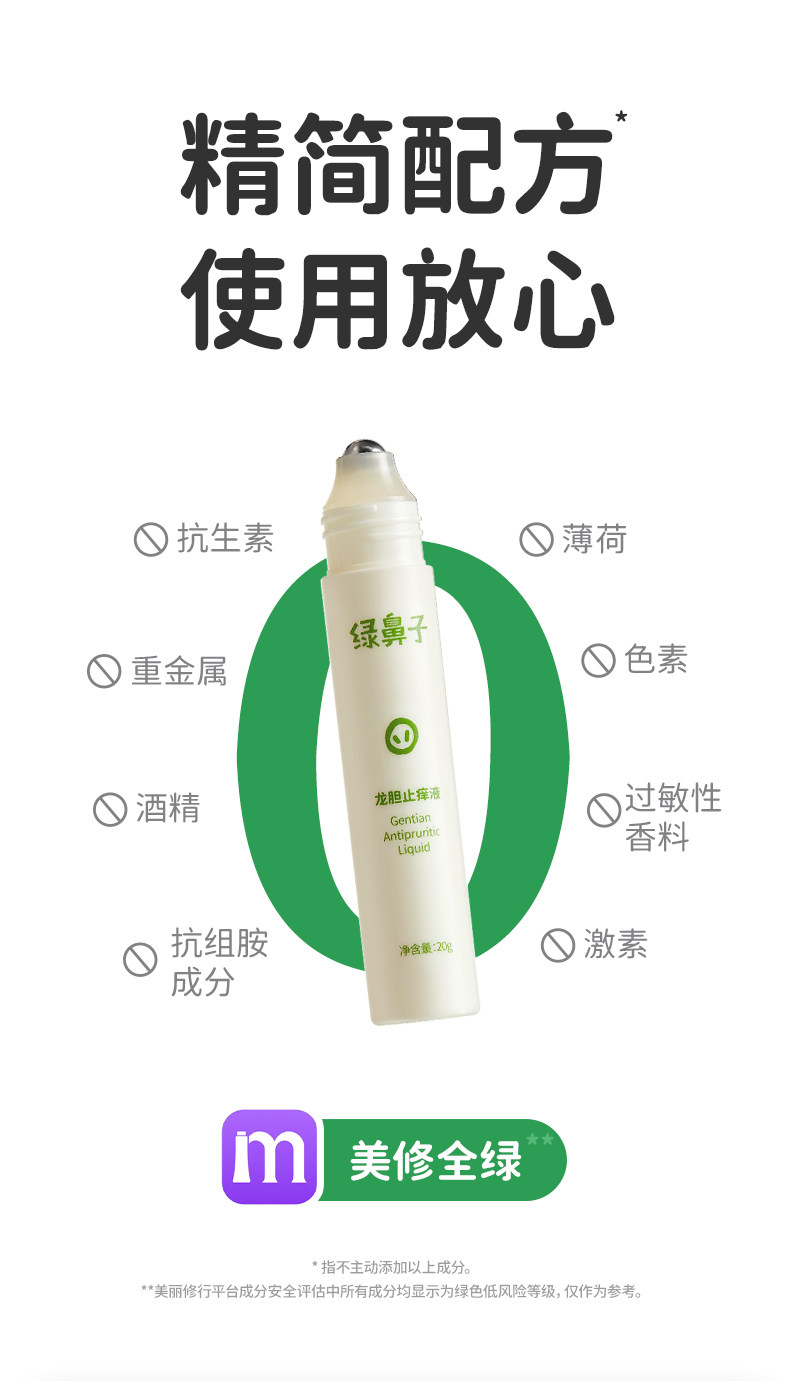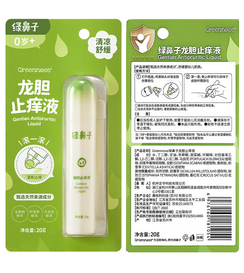 绿鼻子龙胆止痒液、儿童专用、蚊虫叮咬、止痒舒缓、滚珠凝露、紫草膏