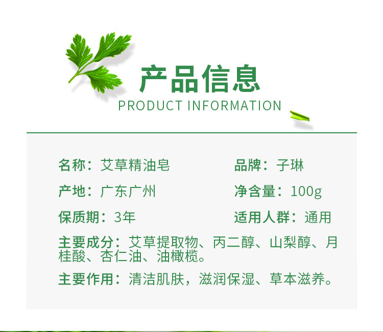 艾草香皂、男士洗澡、止痒除螨、女士洁面、沐浴洗手、手工精油肥皂