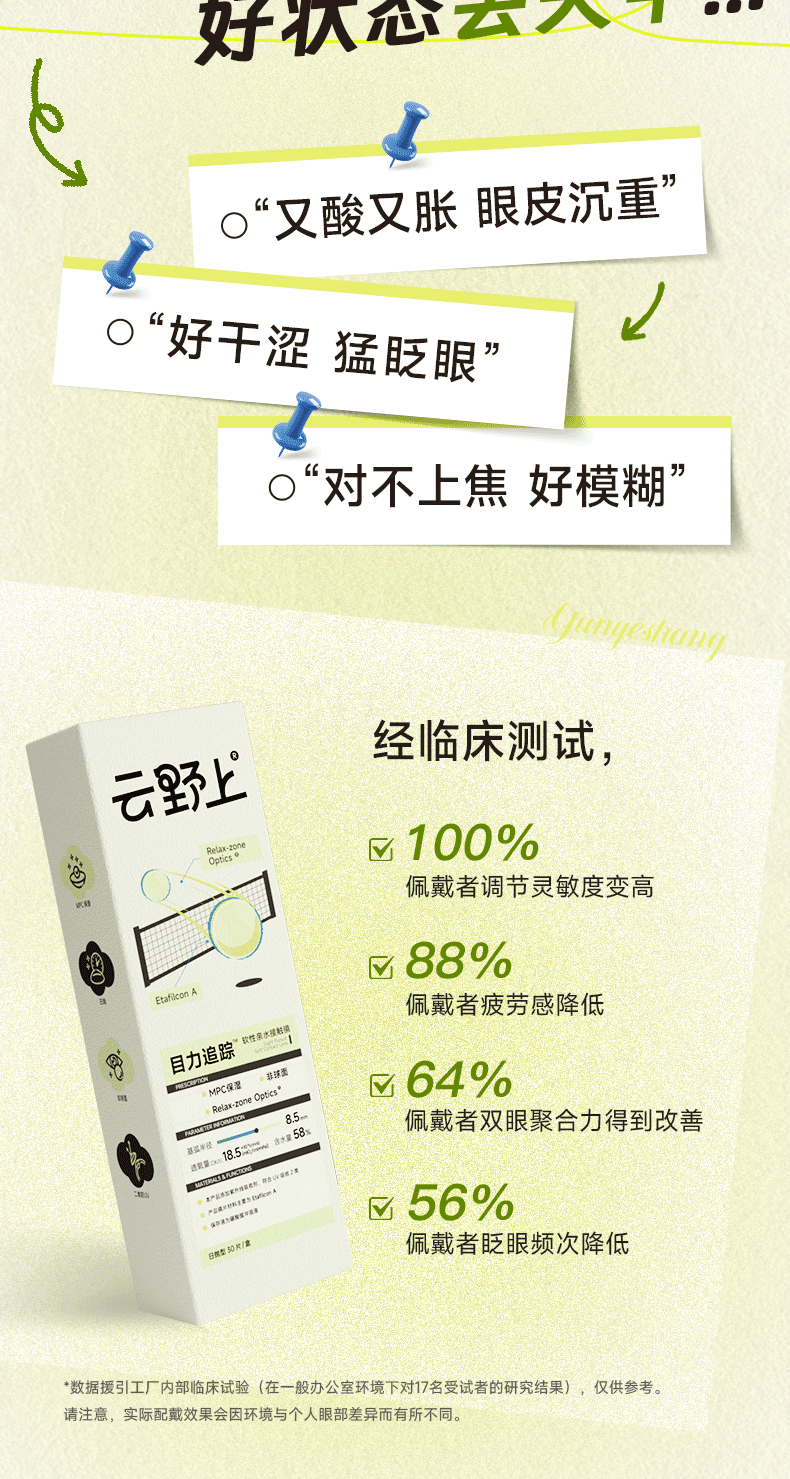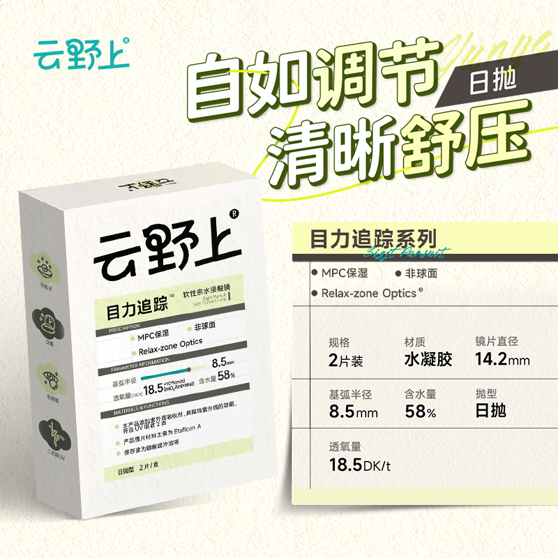 云野上、目力追踪、日抛隐形眼镜、水凝胶、近视透明、高清水润、舒适款