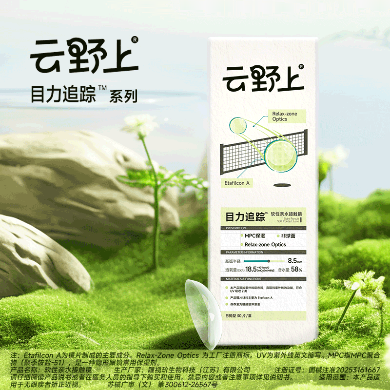 云野上目力追踪日抛2/6片隐形眼镜水凝胶近视透明高清水润舒适款