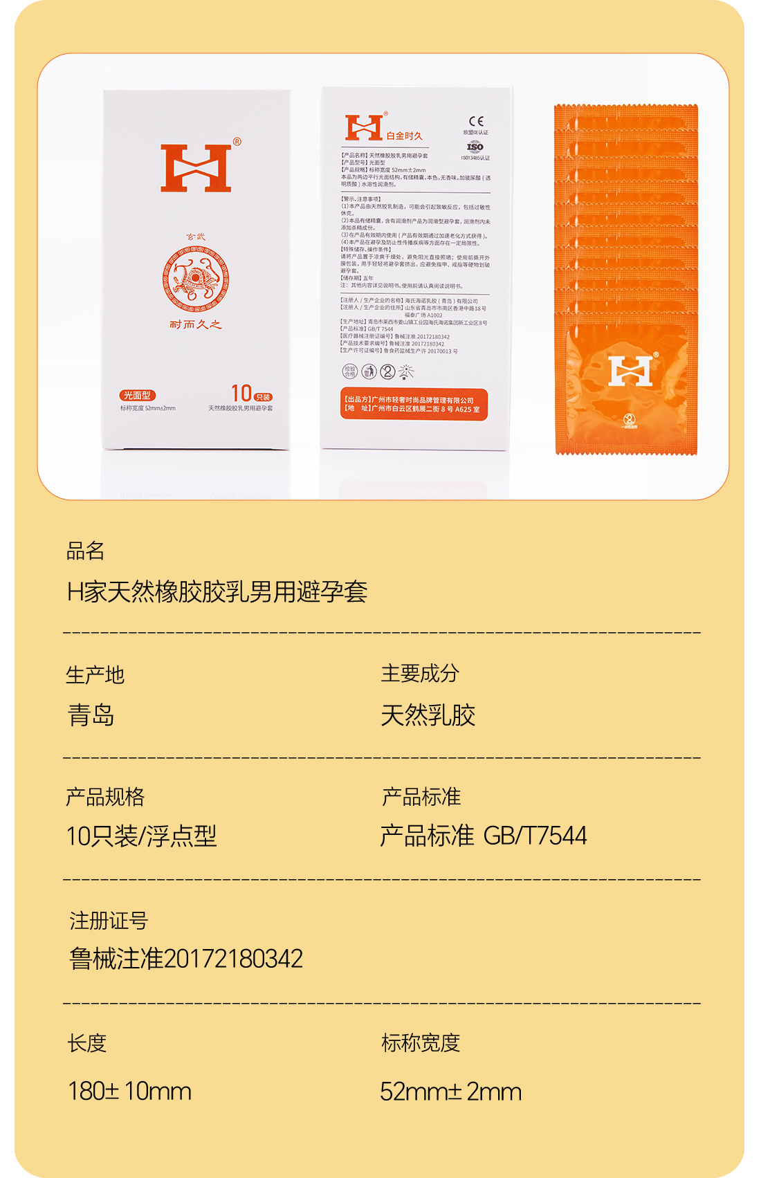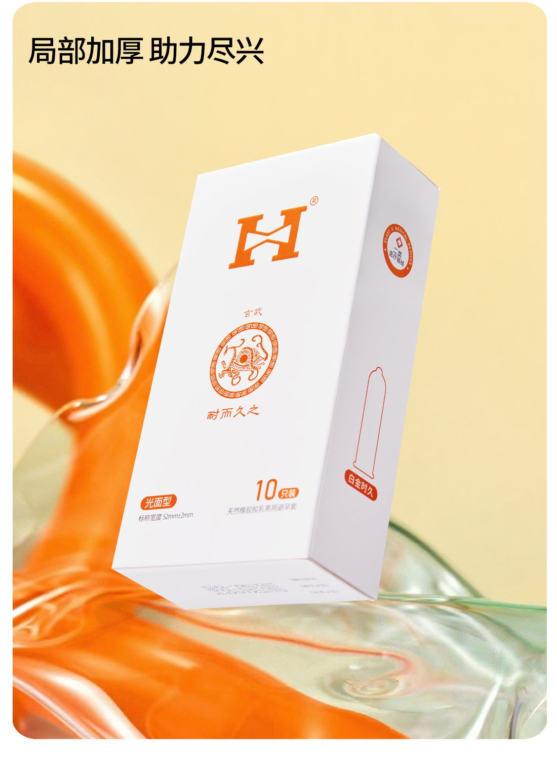 H家避孕套、情趣男用、物理延时、无香型、硬安全套、10只装