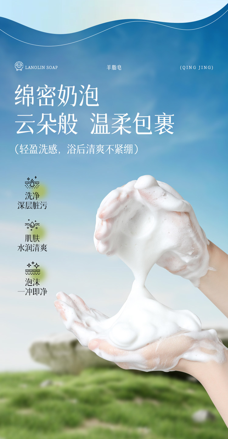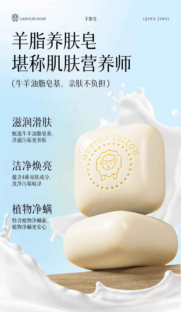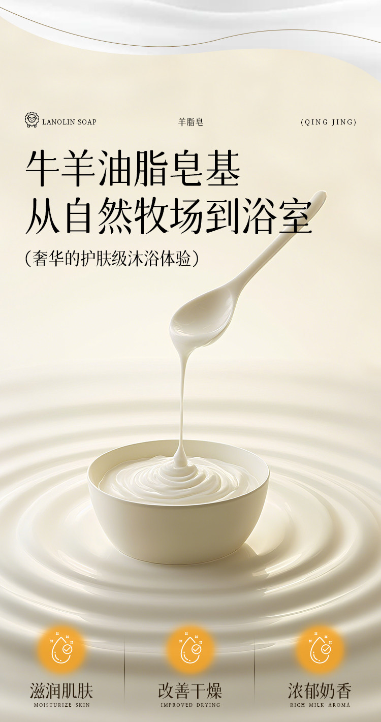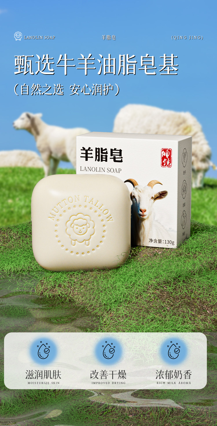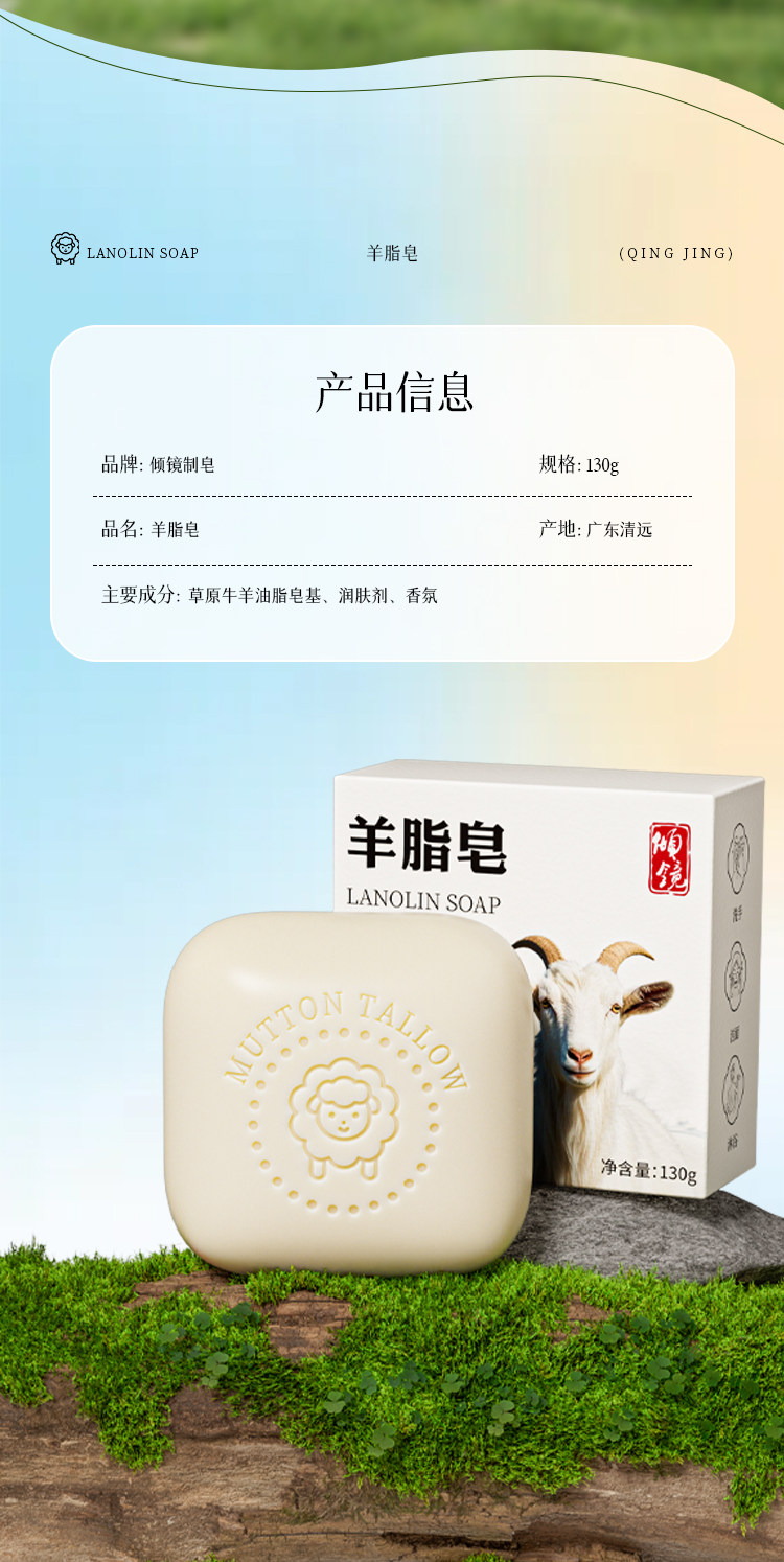 羊脂皂、羊奶、温和净肤、敏感肌适用、滋润护肤、持久保湿、130g