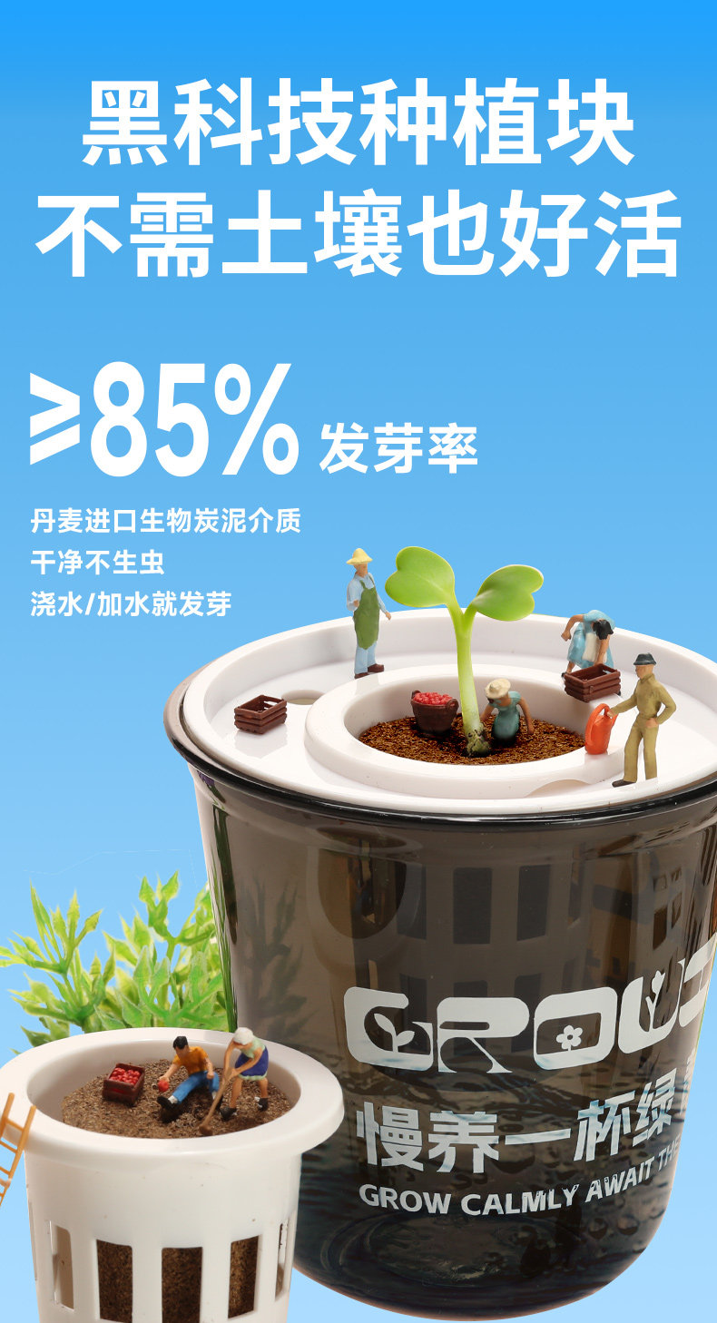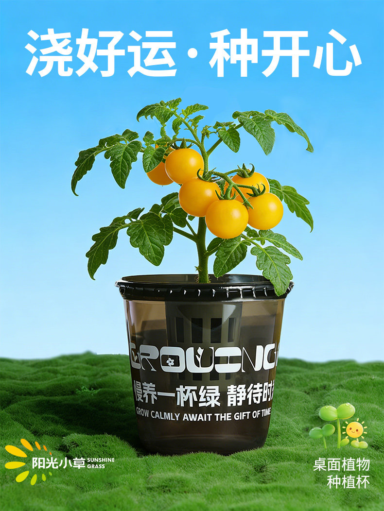 阳光小草、桌面绿植、种植杯、办公室盆栽、懒人种植、送礼物