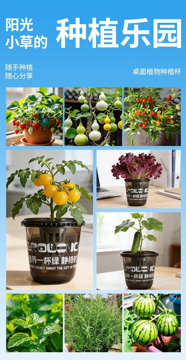 阳光小草桌面绿植种植杯办公室懒人室内种植小盆栽水果蔬菜送礼物