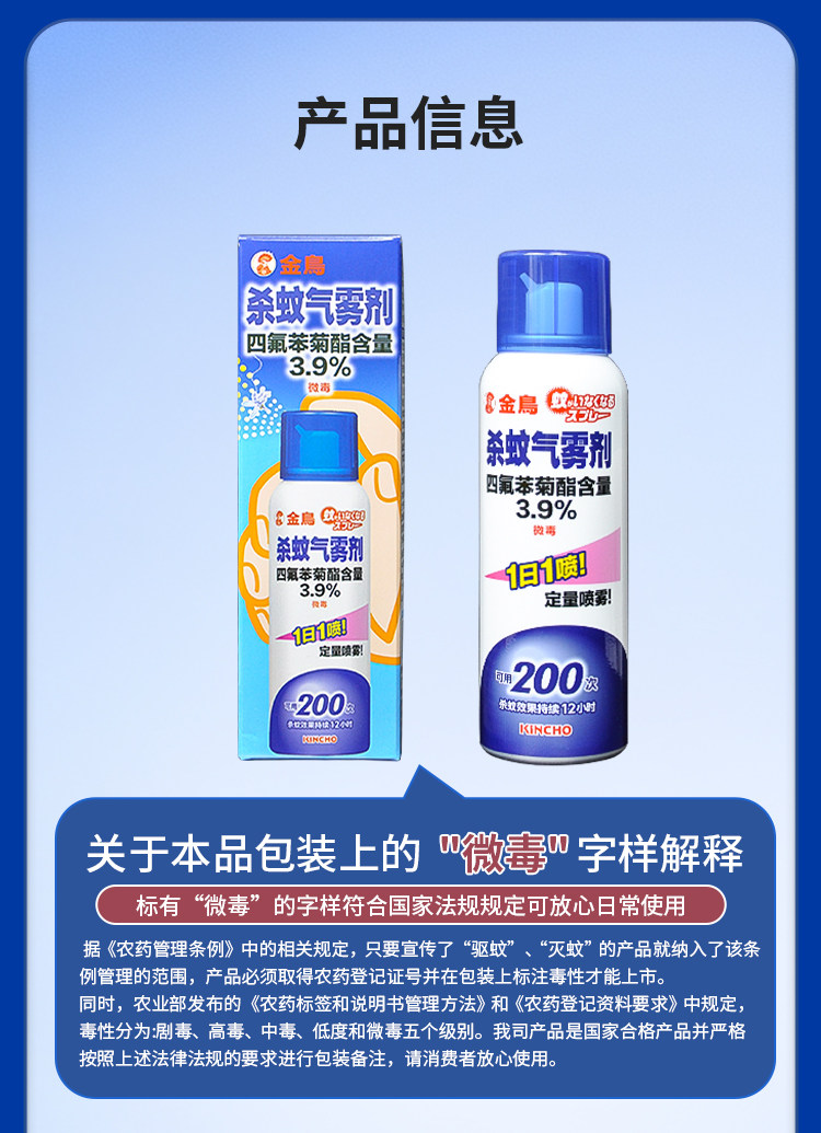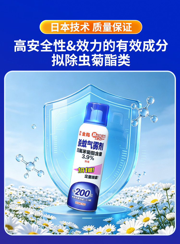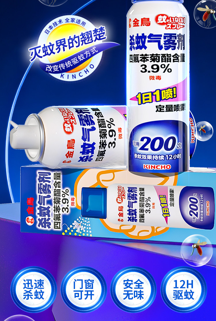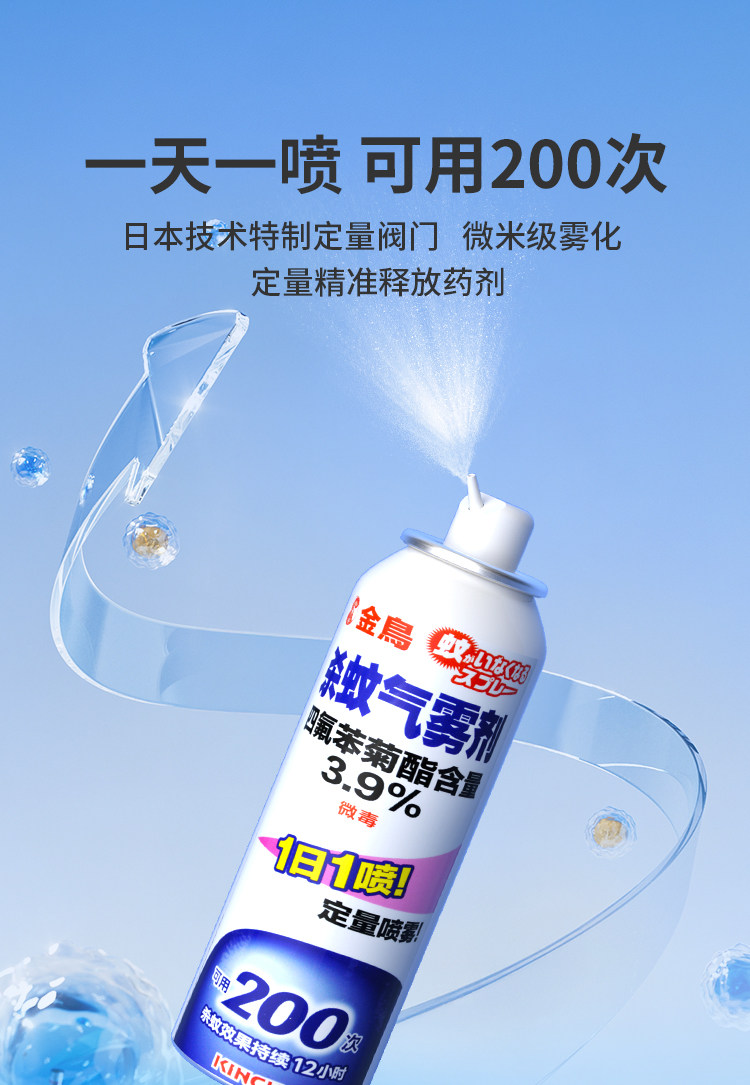 日本金鸟、强力灭蚊喷雾剂、家用、微毒、驱蚊神器、200喷
