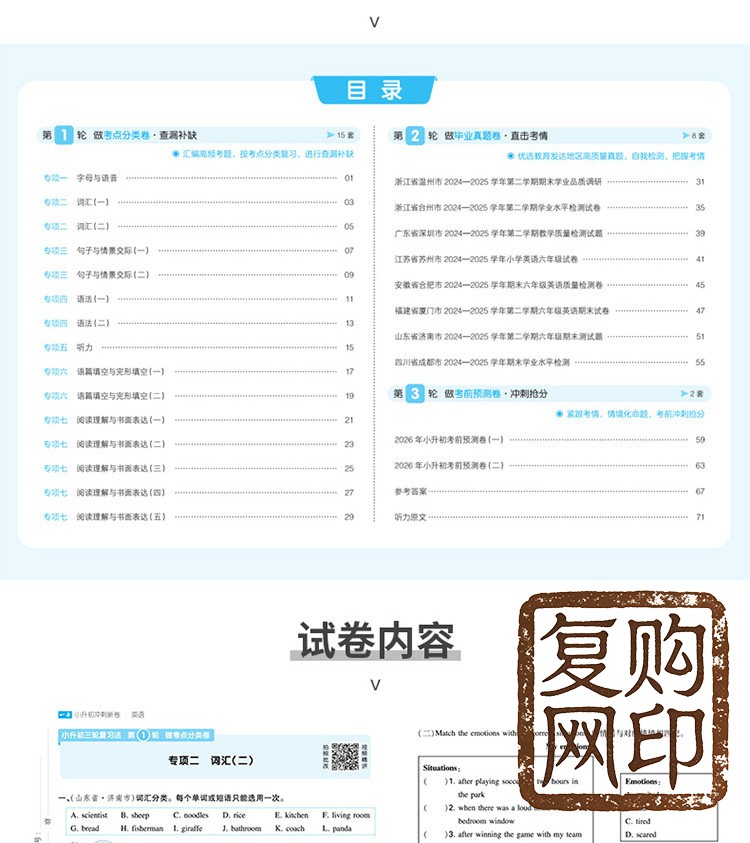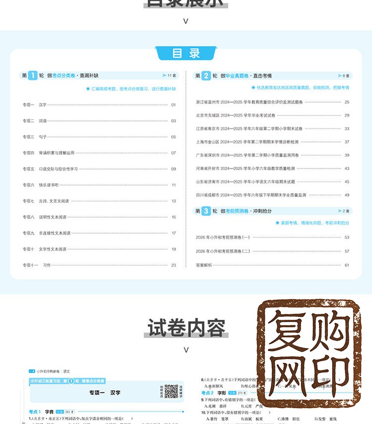 一本 小升初冲刺 分类新卷 三步分类练真题 总复习 分类试卷 历年真题试卷