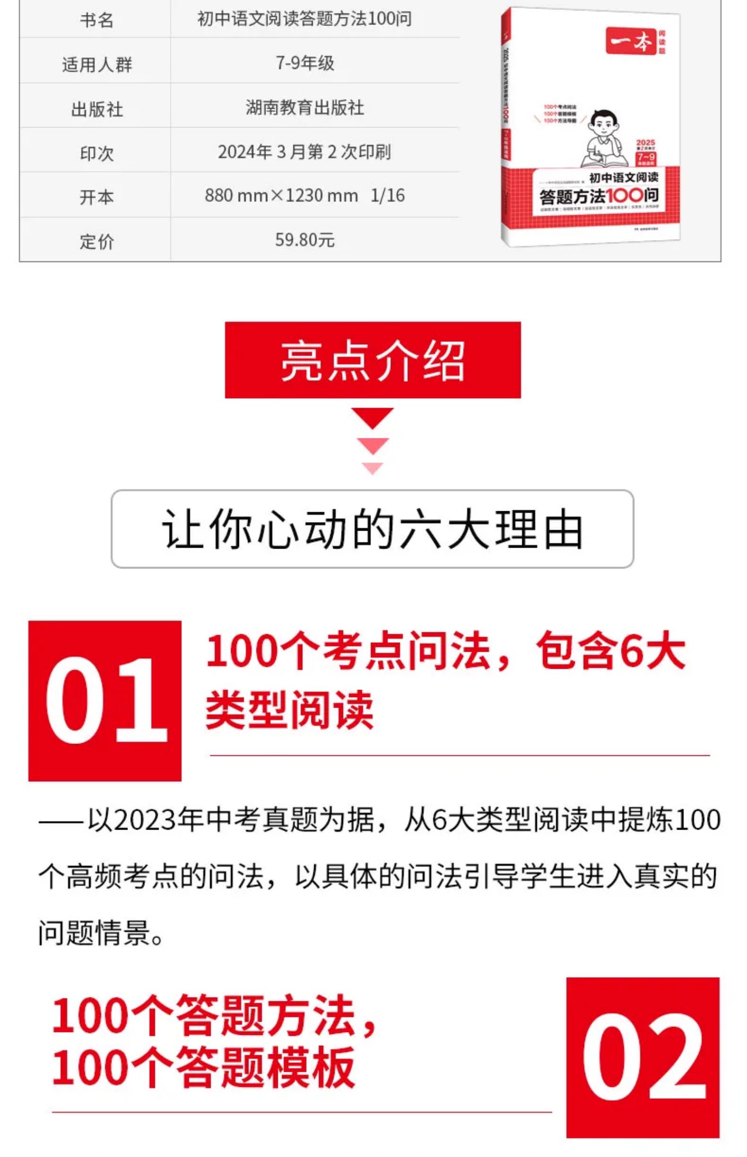 一本初中语文阅读答题模板语文阅读答题100问技巧方法速查七八九年级语文教辅书全国通用中考语文阅读理解答题模板真题方法训练