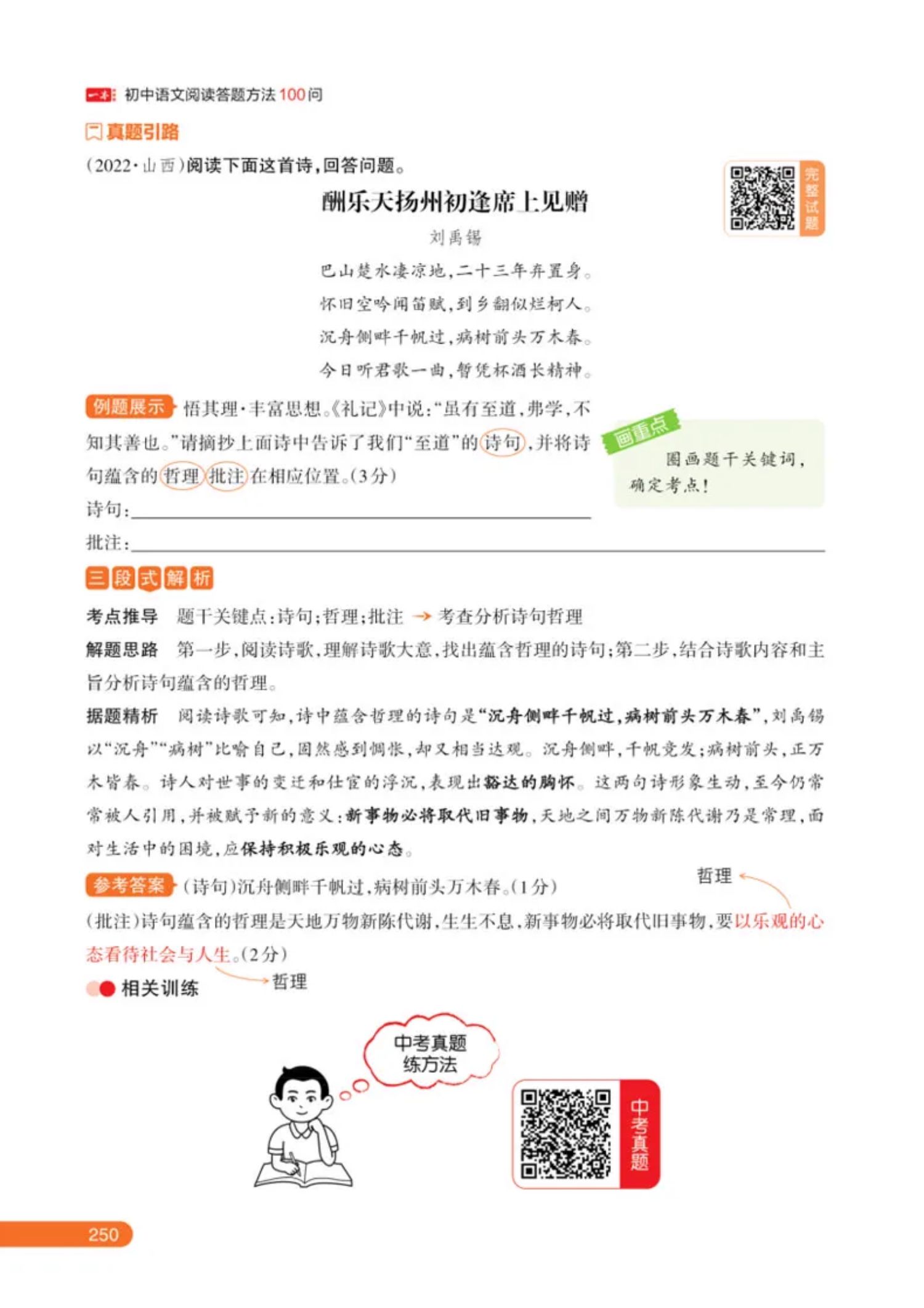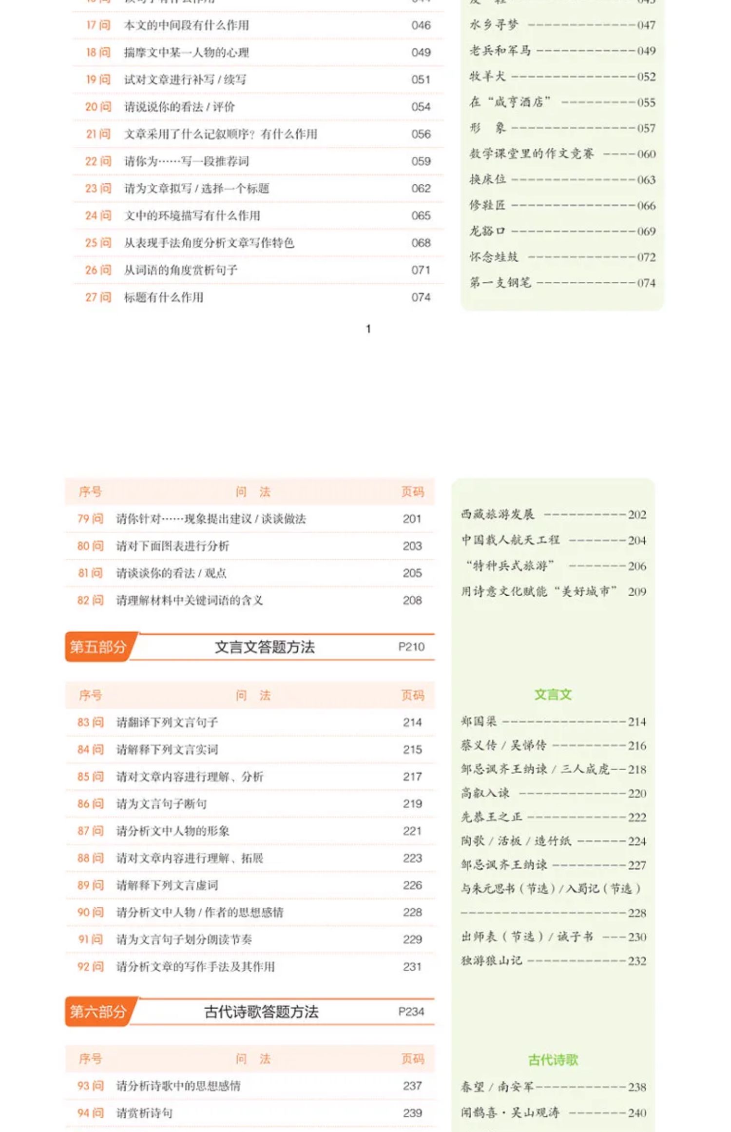 一本 初中 语文阅读答题模板 技巧方法 速查 教辅书 中考 答题模板 真题 方法训练