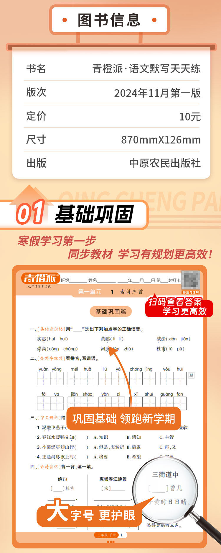 25年春季 青橙派 活页默写 计算字帖 外研 同步练习 寒假天天练 试卷 默写纸